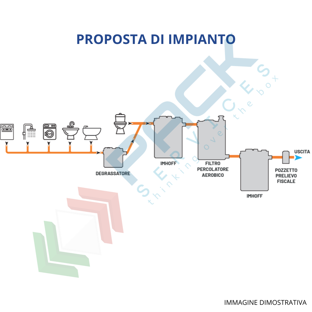 Filtro percolatore aerobico, A.E. 5, capacità 500 Lt, Mis. 780 L x 1000 P x 1000 H mm, per il trattamento secondario dei reflui domestici