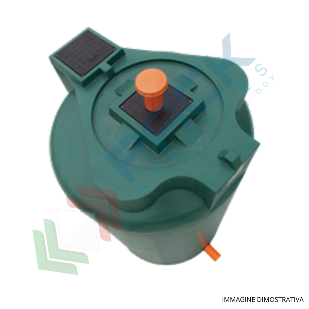 Filtro percolatore aerobico, A.E. 6, mis. Ø 950 x 1100 H mm, capacità 600 Lt. Filtri percolatori aerobici idonei per il trattamento secondario dei reflui domestici in generale delle acque nere confluenti nel collettore fognario mediante digestione aerobica. Filtri realizzati in polietilene lineare mediante lo stampaggio rotazionale. Contenitori monolitici, ossia stampati in un unico pezzo senza giunzioni. Le caratteristiche del refluo trattato risultano accettabili secondo il Decreto Legislativo 3 Aprile 2006 n. 152 TAB 3 Allegato 5 e successive modifiche. Sono composti da un vano principale di ossidazione che accoglie il materiale plastico di riempimento.