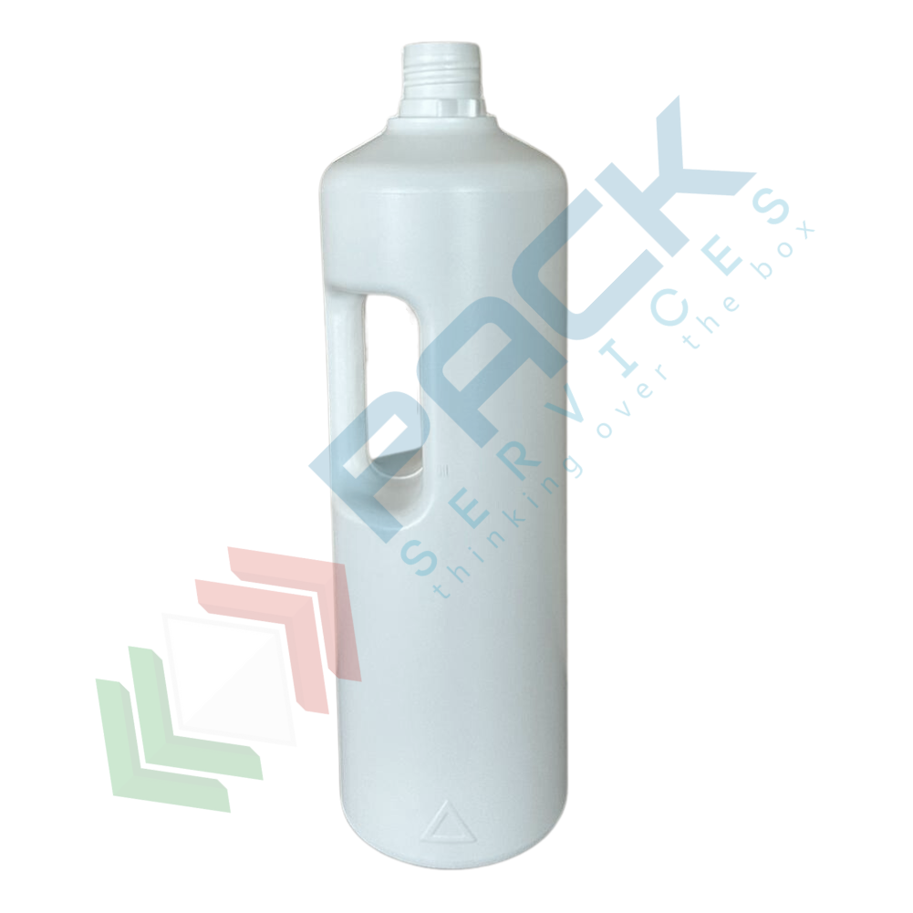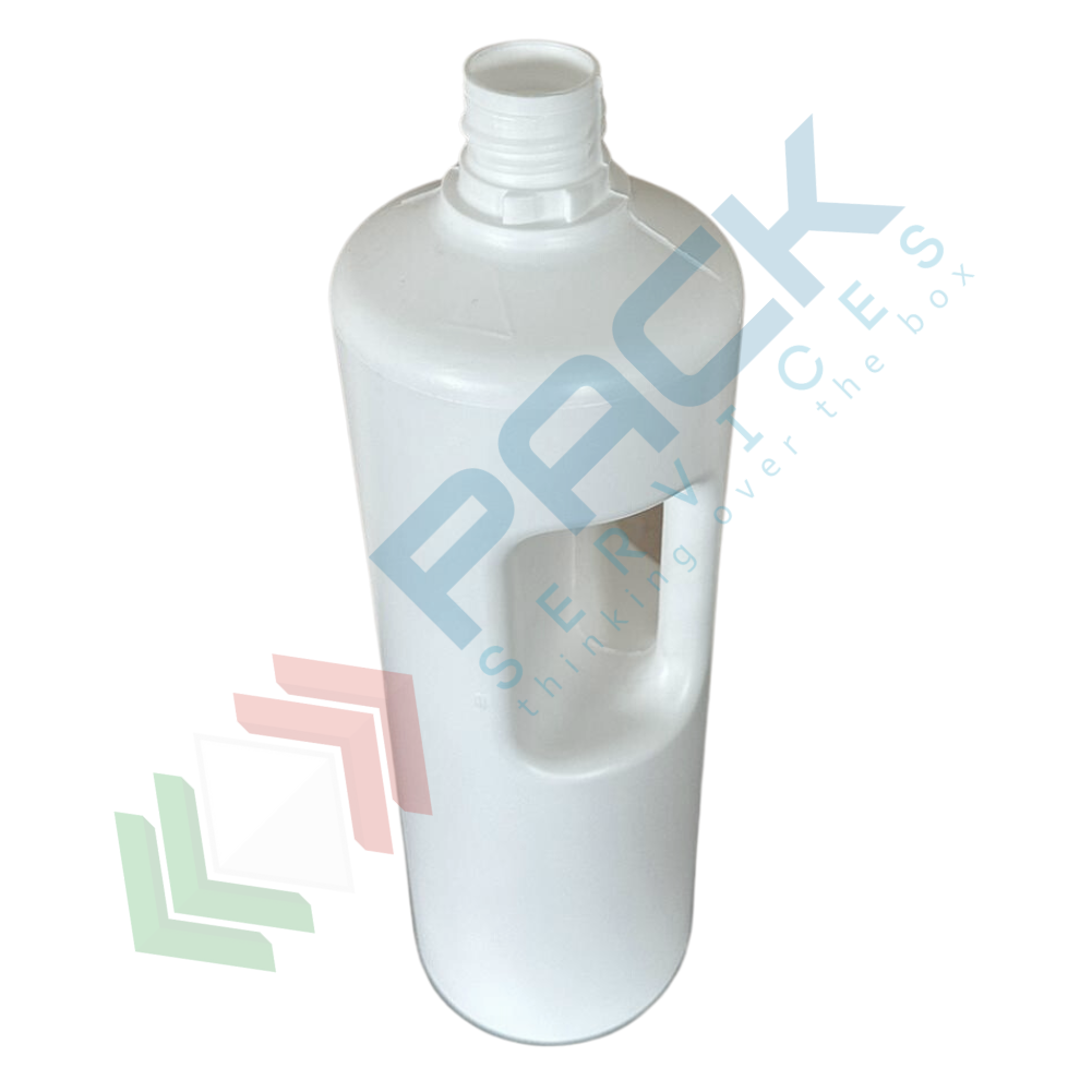 FLACONE 1 LITRO IN PLASTICA (HDPE) CILINDRICO BOCCA STRETTA CON MANICO