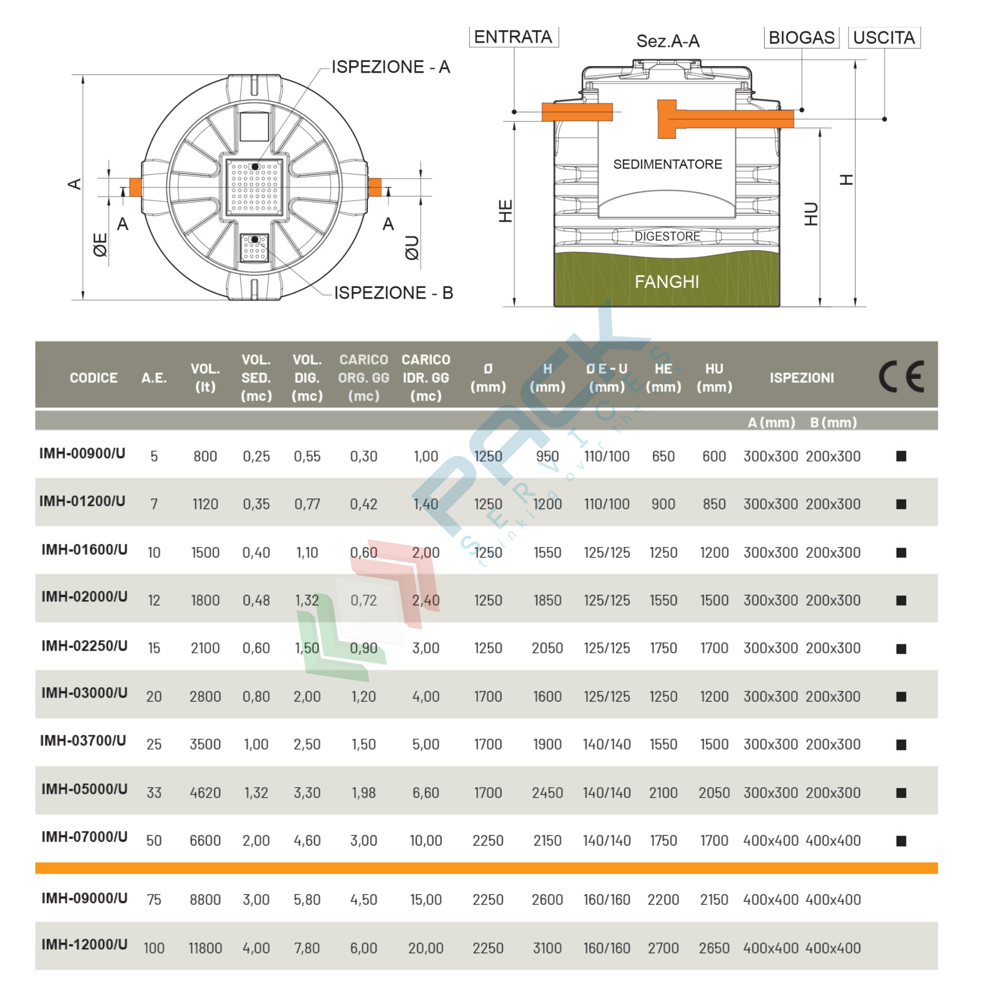 Impiego tipico: Trattamento primario dei reflui domestici in generale delle acque nere confluenti nel collettore fognario e può essere utilizzata in ogni caso laddove sia espressamente indicato l'uso di una fossa Imhoff.