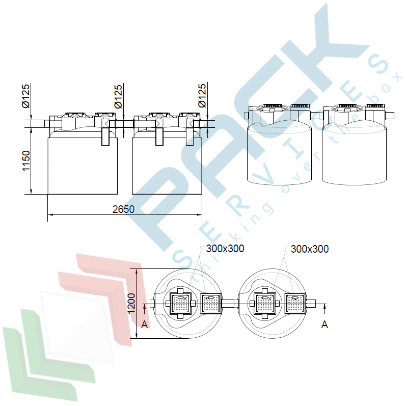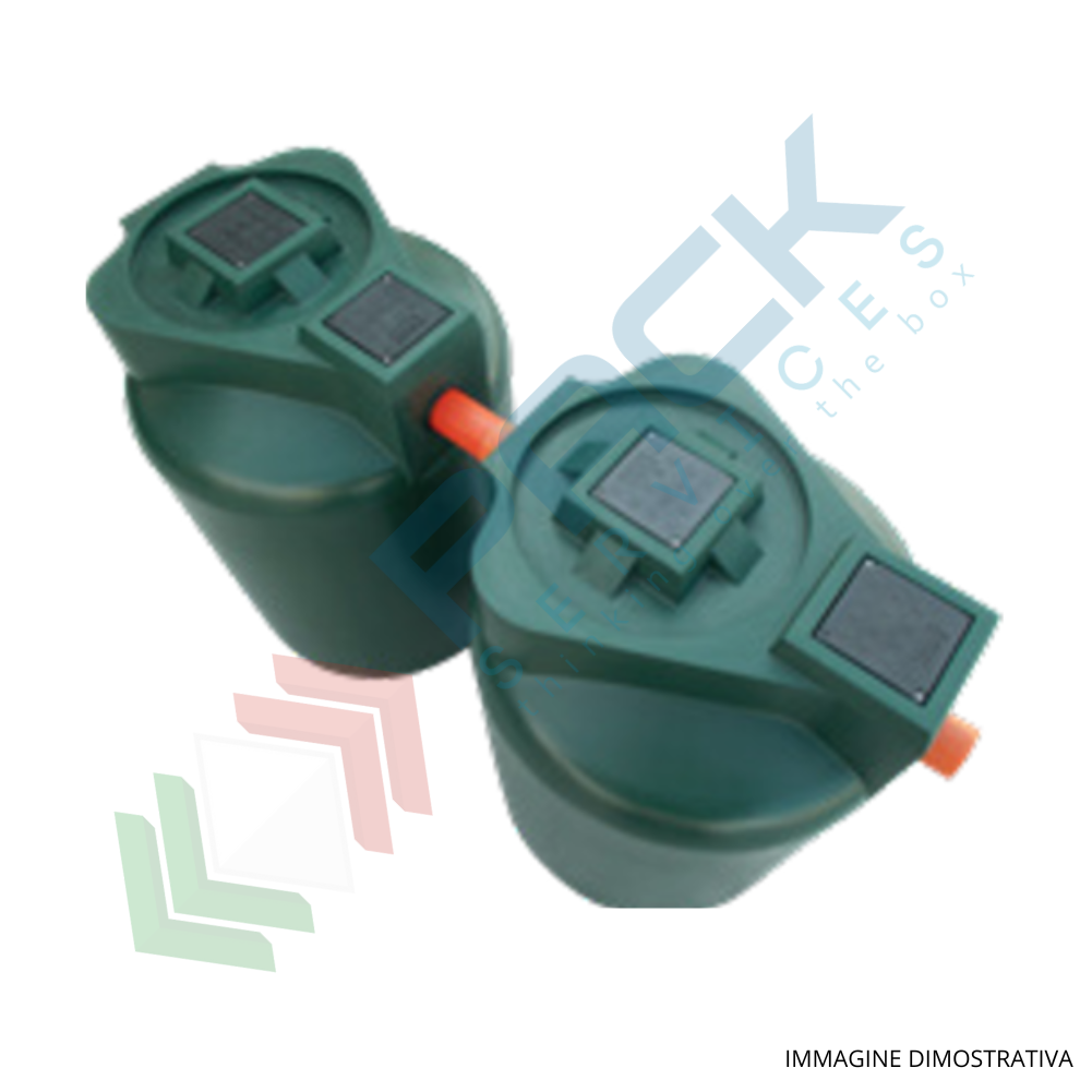 Fossa settica bicamerale, A.E. 16, mis. Ø 2400 x H 1400 mm, capacità 1600 Lt. Fossa bicamerale indicata per il trattamento primario dei reflui domestici in generale delle acque miste (nere e grigie) confluenti nel collettore fognario. Può essere utilizzata in ogni caso laddove sia espressamente indicato l’uso di una fossa settica. Contenitore cilindrico verticale liscio con fondo piano, realizzato in polietilene lineare mediante lo stampaggio rotazionale; Monolitico ovvero stampato in un unico pezzo senza giunzioni. È equipaggiato di ispezioni corredate da coperchio a base quadrata pedonabile, tronchetto di uscita in PVC, tubazione d’ingresso in PP, guarnizione in EPDM sulla tubazione d’uscita, guarnizione in EPDM predisposta per il collegamento della tubazione per il biogas (non compresa nella fornitura).