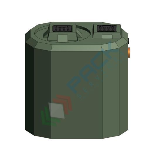 Fossa settica, A.E. 5, mis. 780 L x 1000 P x 1000 H mm, capacità 500 Lt, per il trattamento primario dei reflui domestici in generale delle acque miste (nere e grigie) confluenti nel collettore fognario e può essere utilizzata in ogni caso laddove sia espressamente indicato l’uso di una fossa settica. Contenitore cilindrico verticale liscio con fondo piano, realizzato in polietilene lineare mediante lo stampaggio rotazionale. Contenitore monolitico stampato in un unico pezzo senza giunzioni. È equipaggiato di ispezioni corredate da coperchio a base quadrata pedonabile, tronchetto di uscita in PVC, tubazione d’ingresso in PP, guarnizione in EPDM sulla tubazione d’uscita, guarnizione in EPDM predisposta per il collegamento della tubazione per il biogas (non compresa nella fornitura).