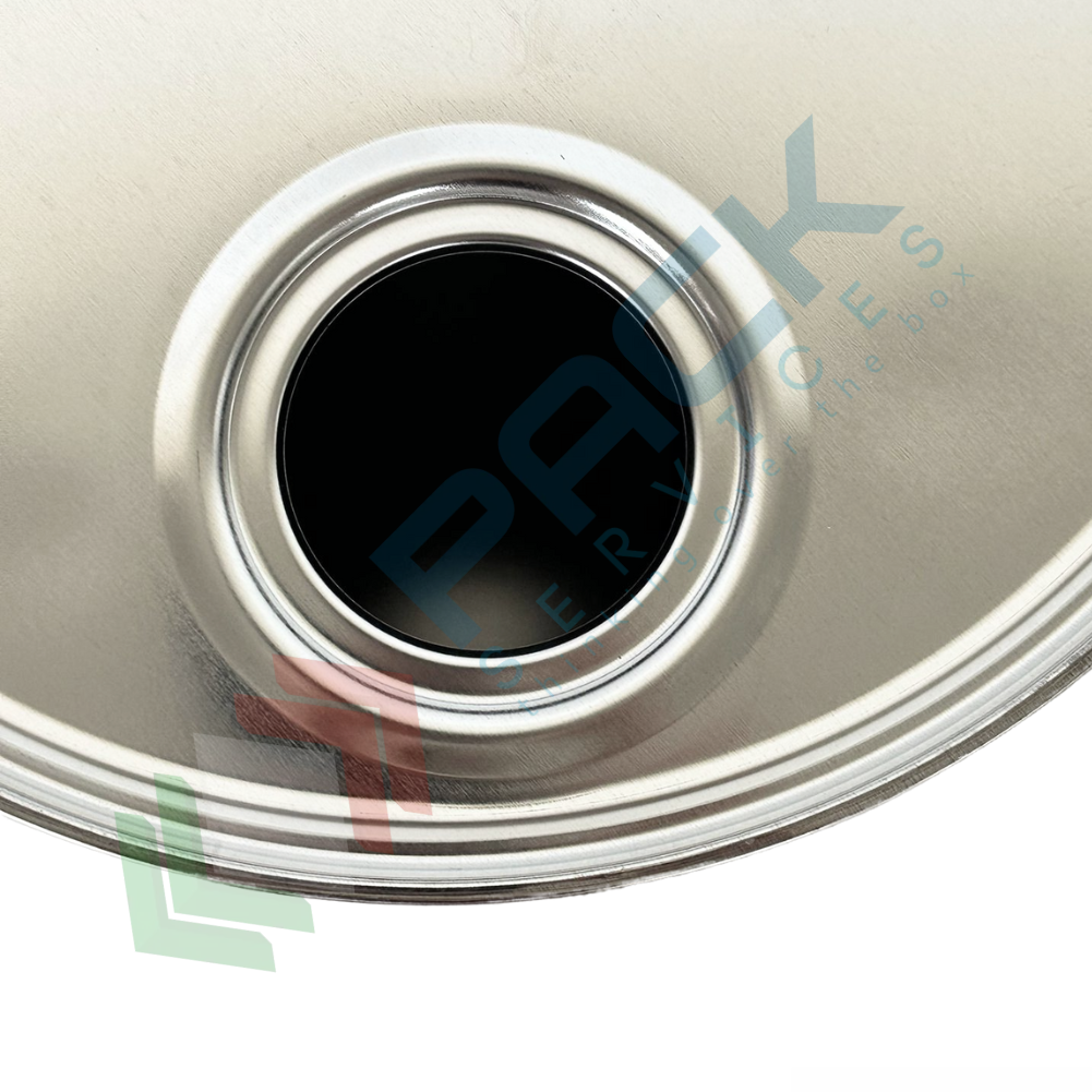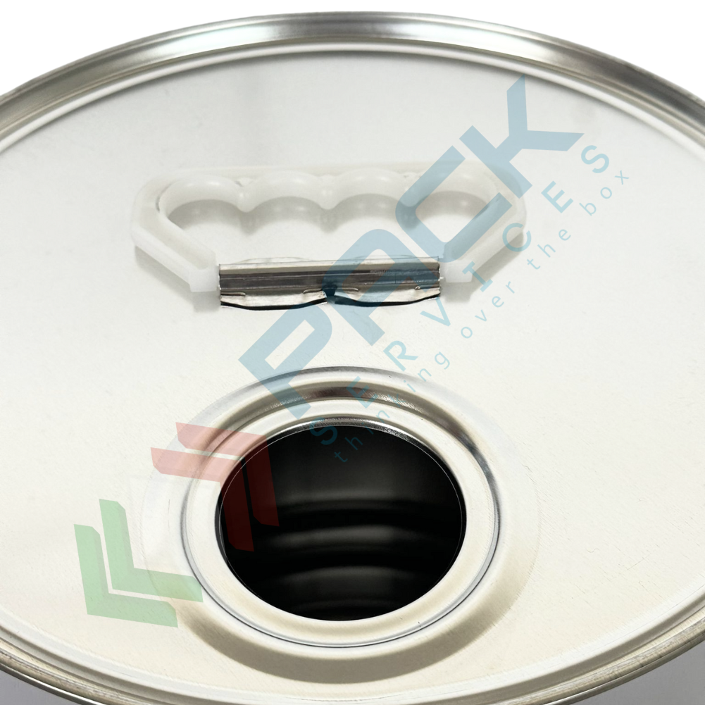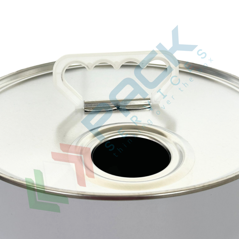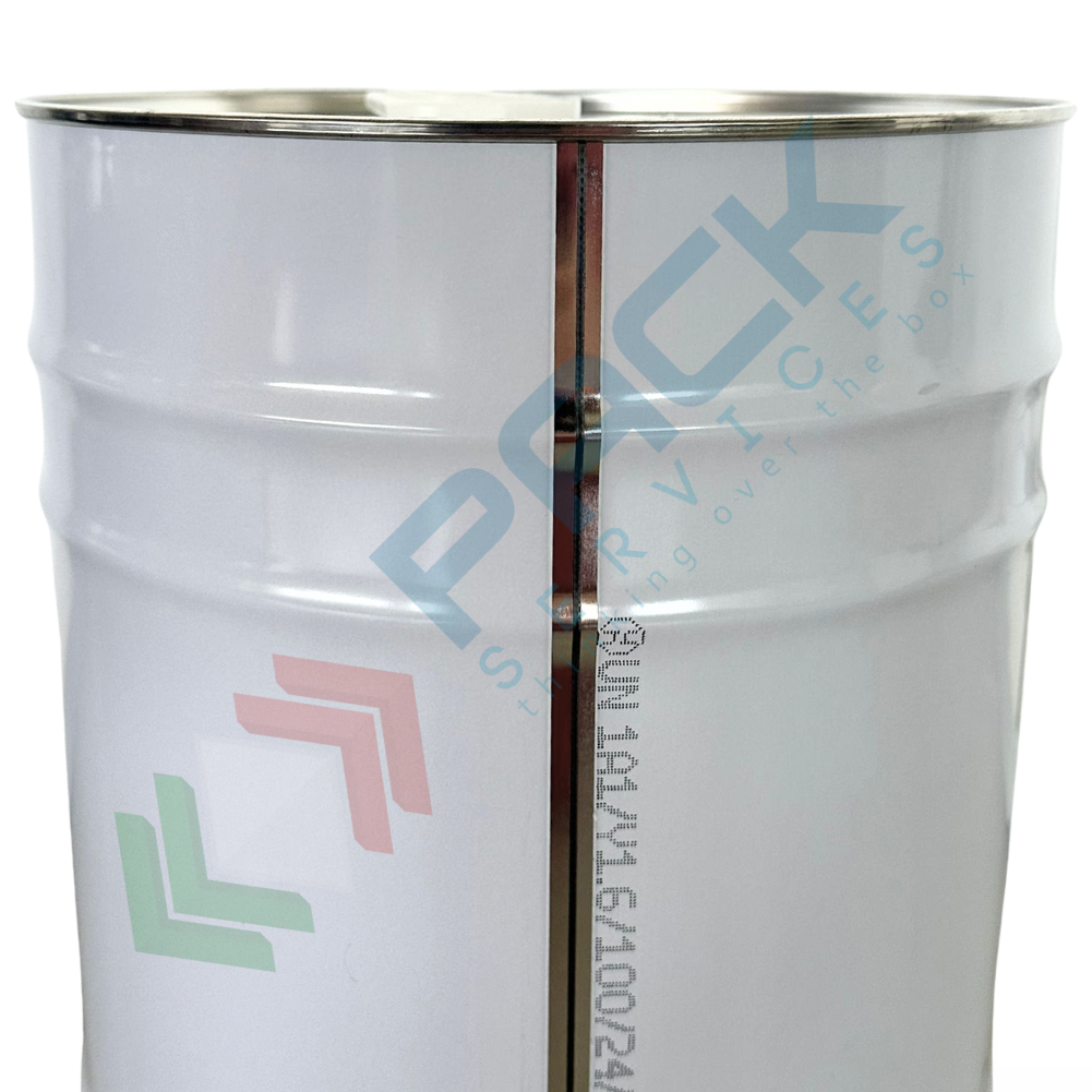 Fusto in ferro cilindrico foro Ø 57 mm, Mis. Ø 285 x 392 H mm, capacità nominale 20 Lt, capacità totale 22,5 Lt, omologato ADR/ONU, (tappo dosatore escluso), bianco int. grezzo