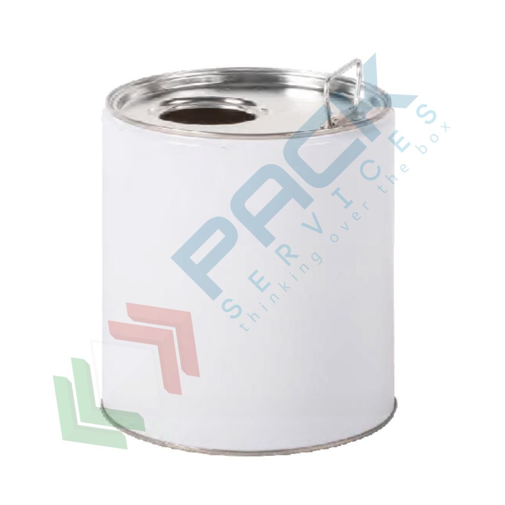 Fusto in ferro cilindrico foro Ø 57 mm, Mis. Ø 172 x 262 H mm, capacità nominale 5 Lt, capacità totale 5,7 Lt, omologato ADR/ONU, (tappo dosatore escluso), bianco int. grezzo