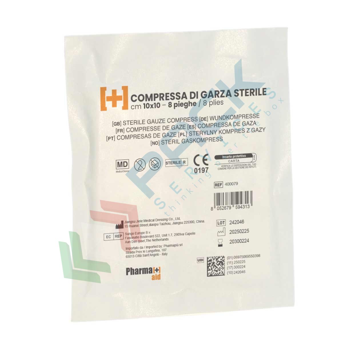 Home●Pronto Soccorso●Medicazione e Ausili Emergenza●Bendaggi, Garze, Teli●Garza idrofila sterile 10 x 10 cm - 8 pieghe