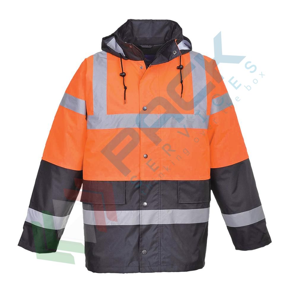 Giacca alta visibilità invernale e antipioggia 100% poliestere, modello Traffic Bicolore Hi-Vis, impermeabile con cuciture nastrate per prevenire la penetrazione dell'acqua, omologata EN ISO 20471 + EN 343 + EN 342, colore arancione/blu navy, taglia 3XL