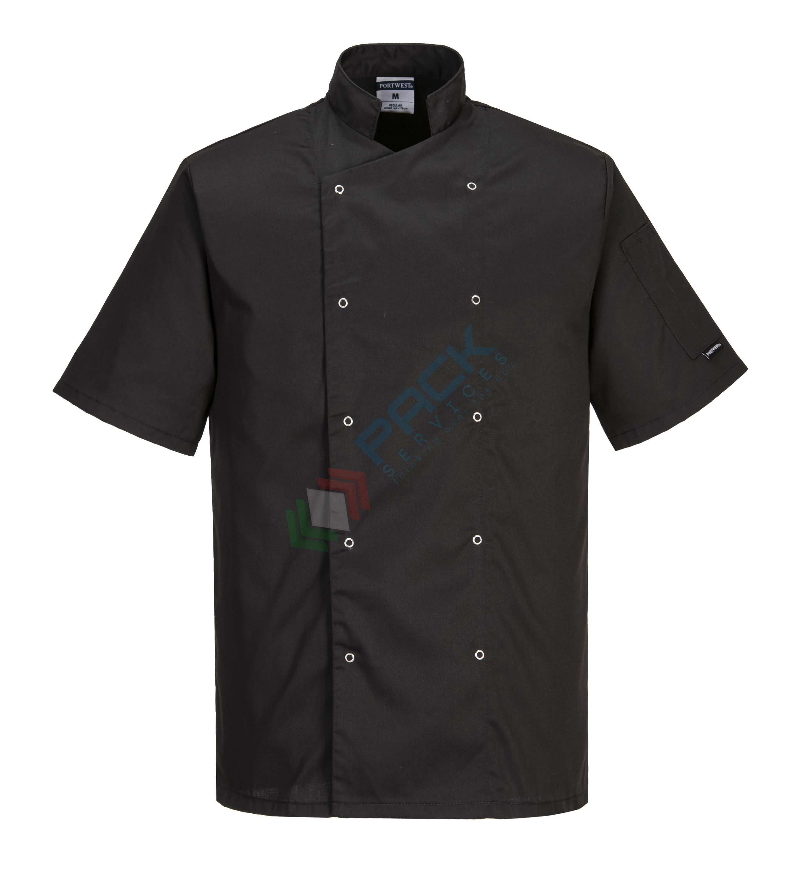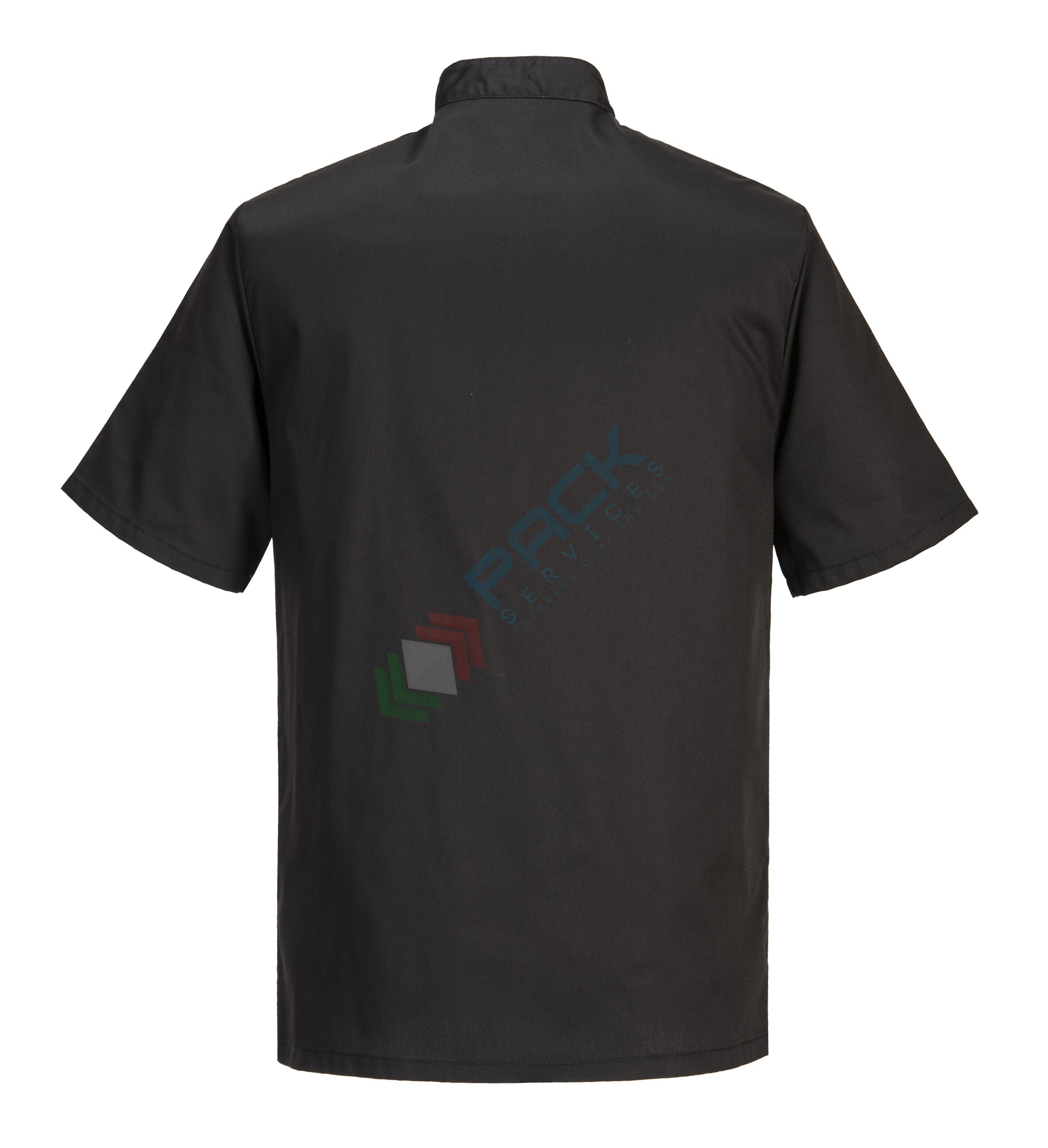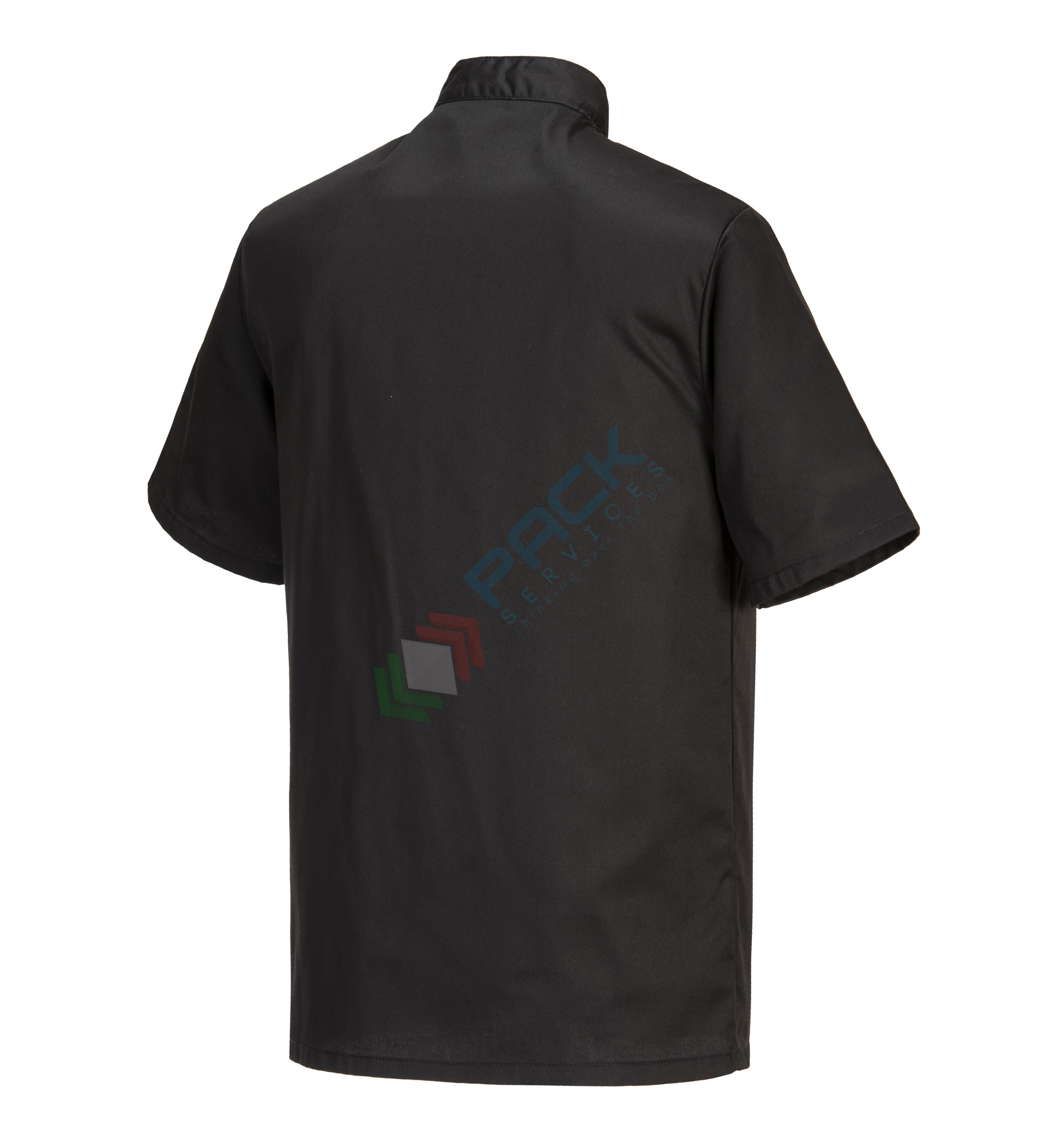 Giacca da lavoro, modello chef, tessuto Twil, 65% poliestere + 35% cotone, 1 tasca, 190 gr, manica corta, colore nero
