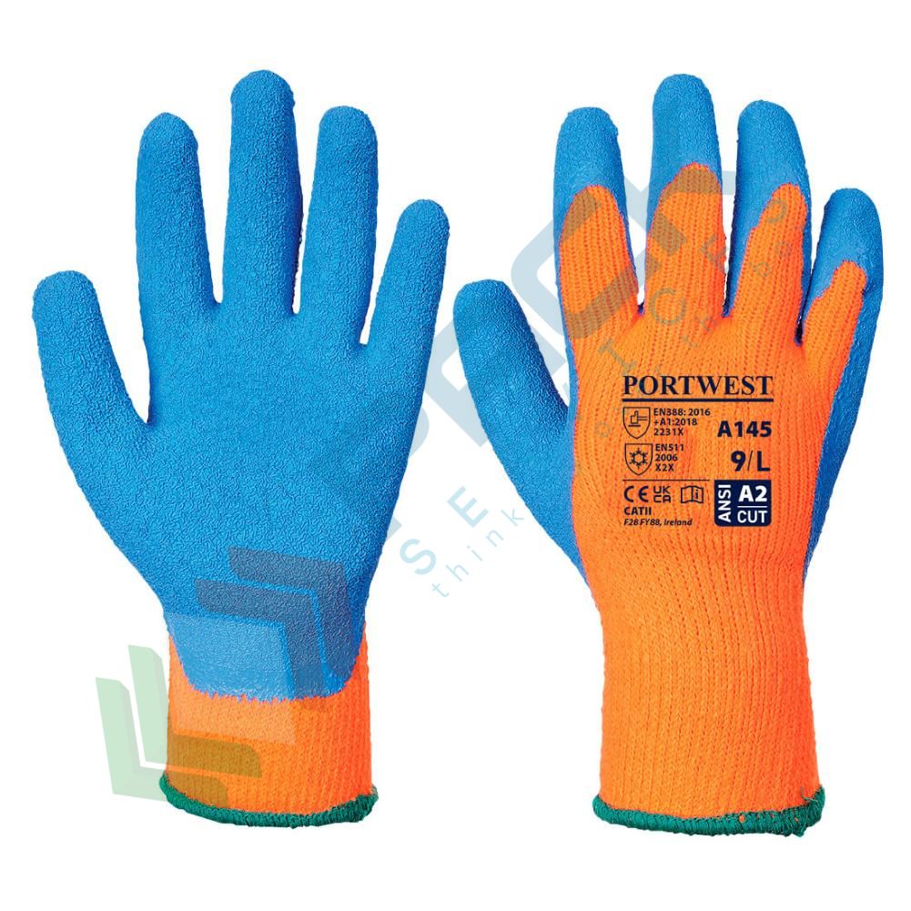 Guanti da lavoro resistenti al freddo con caldo rivestimento in acrilico + grip in lattice Crinkle, calibro 7, omologati EN 388 + EN 511, colore arancione/blu, taglia L