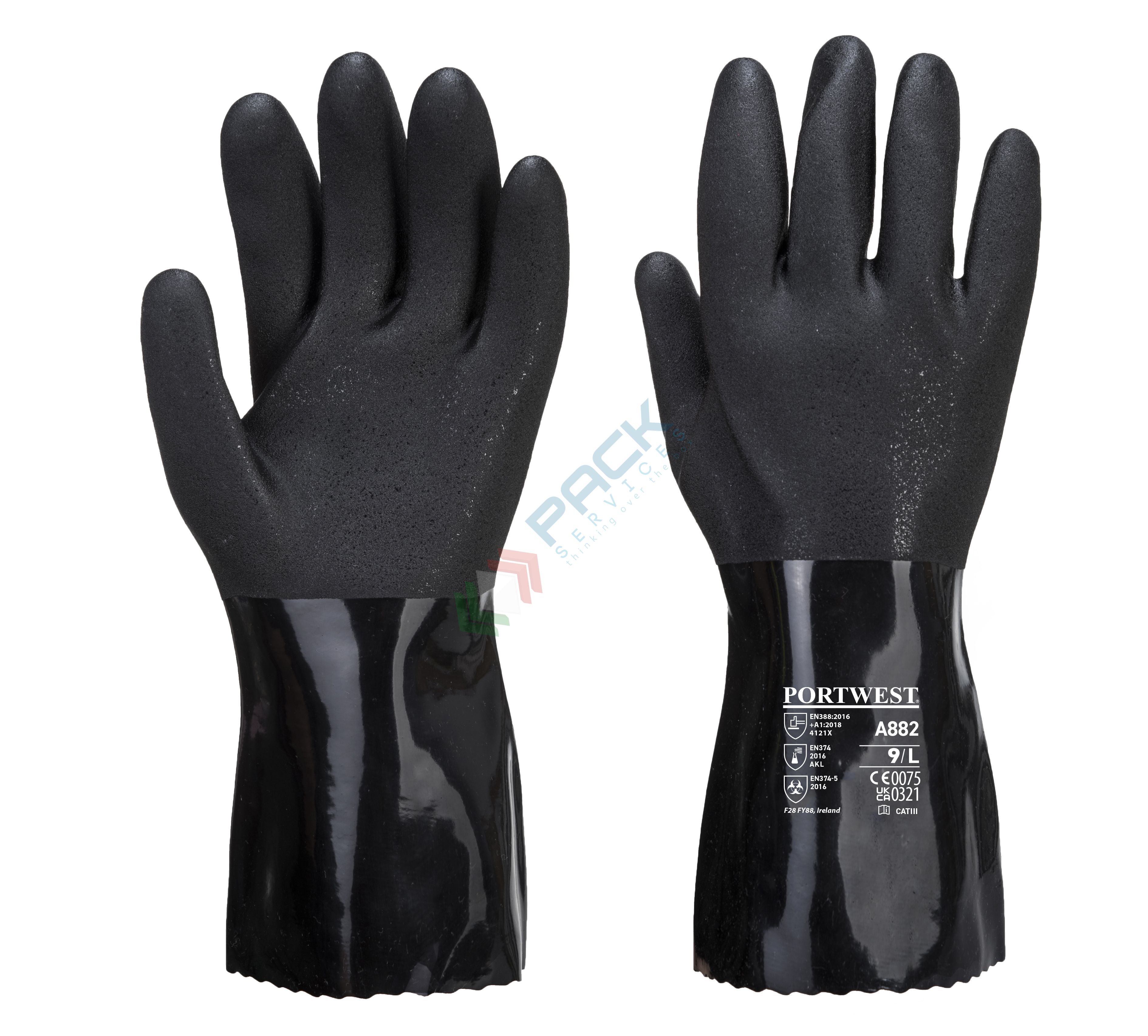 EN 388 (4121X) + EN 407 (X1XXXX) + EN ISO 374-1 + EN ISO 374-5 + IEC 61340-5