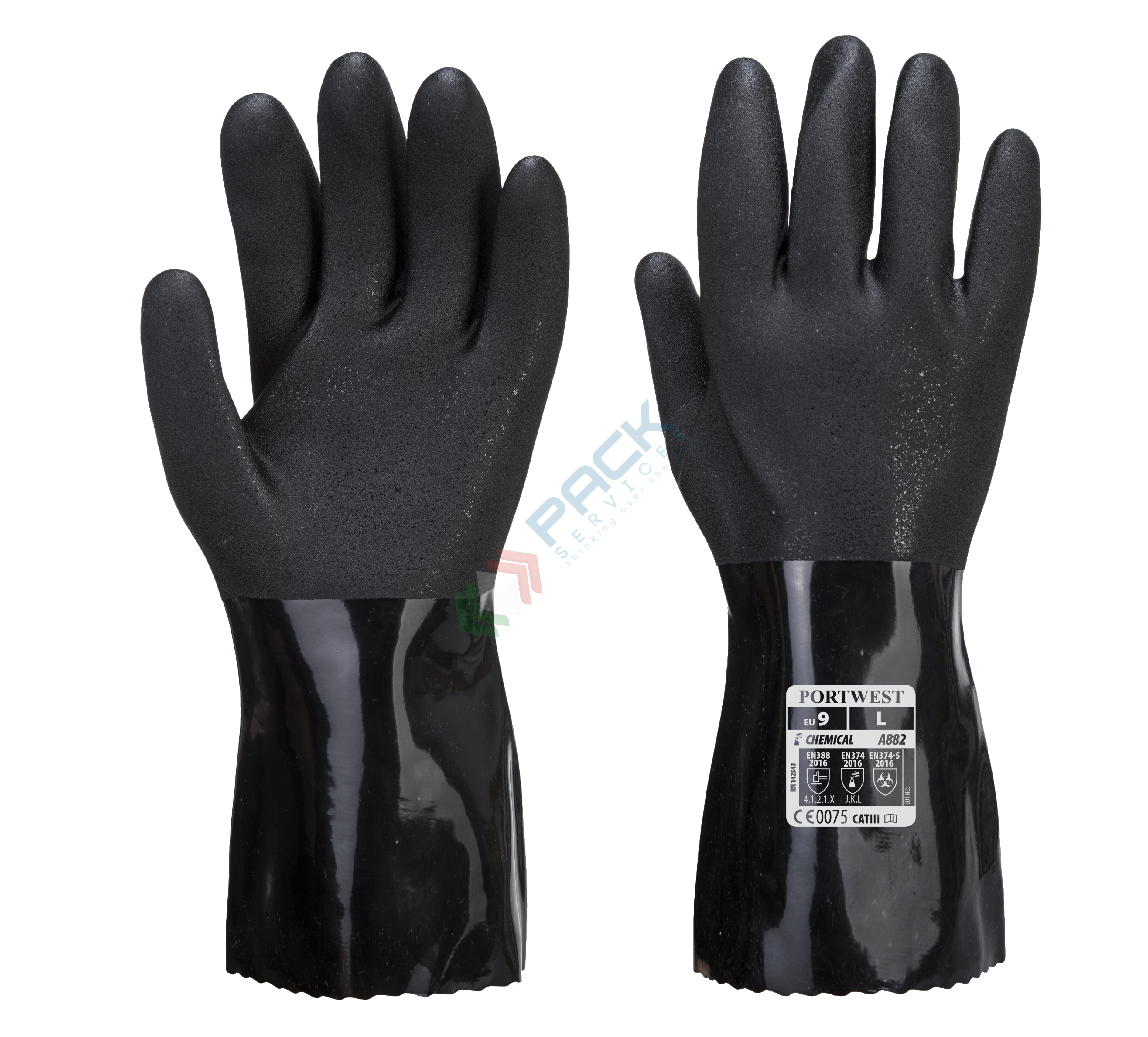 • Guanto in PVC a doppio strato con palmo sabbiato per una presa migliore