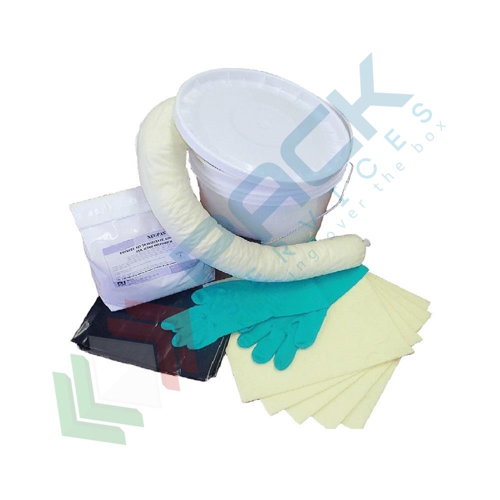Kit di pronto intervento per prodotti chimici, portatile, capacità assorbimento 15 Lt, confezionato in secchio in plastica