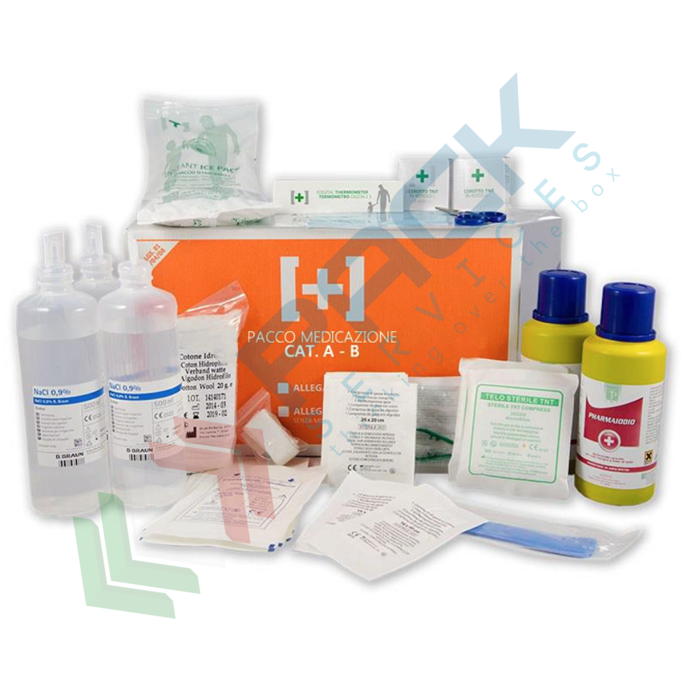 Kit reintegro pronto soccorso, contenuto base senza sfigmomanometro, conforme all'allegato 1 del D.lgs. 81/2008-D.M.388/2003, ideale per 3 o più lavoratori (per aziende del gruppo AB)