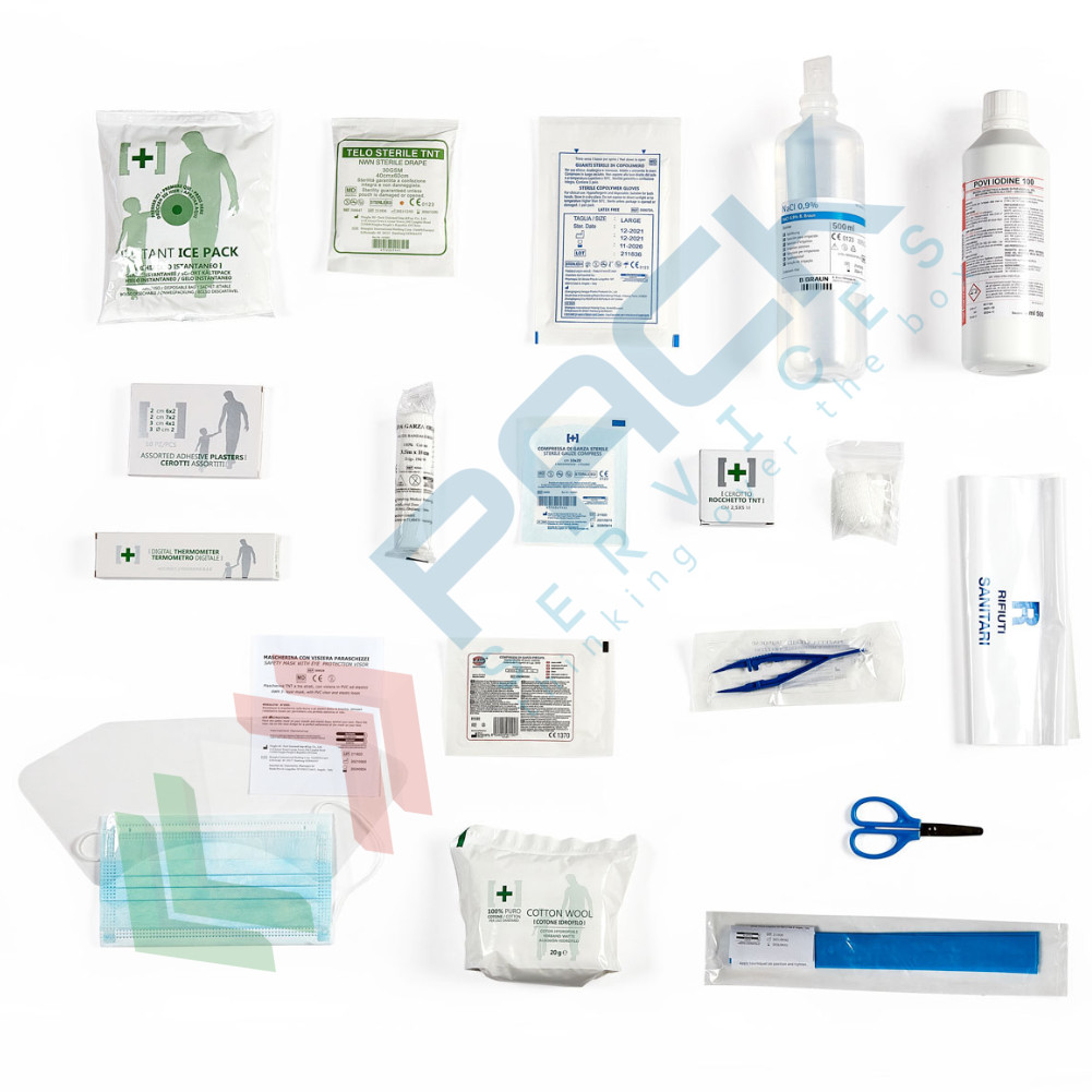 KIT REINTEGRO PRONTO SOCCORSO DM 388 ALLEGATO 1. CONTENUTO BASE - VERSIONE SENZA SFIGMOMANOMETRO