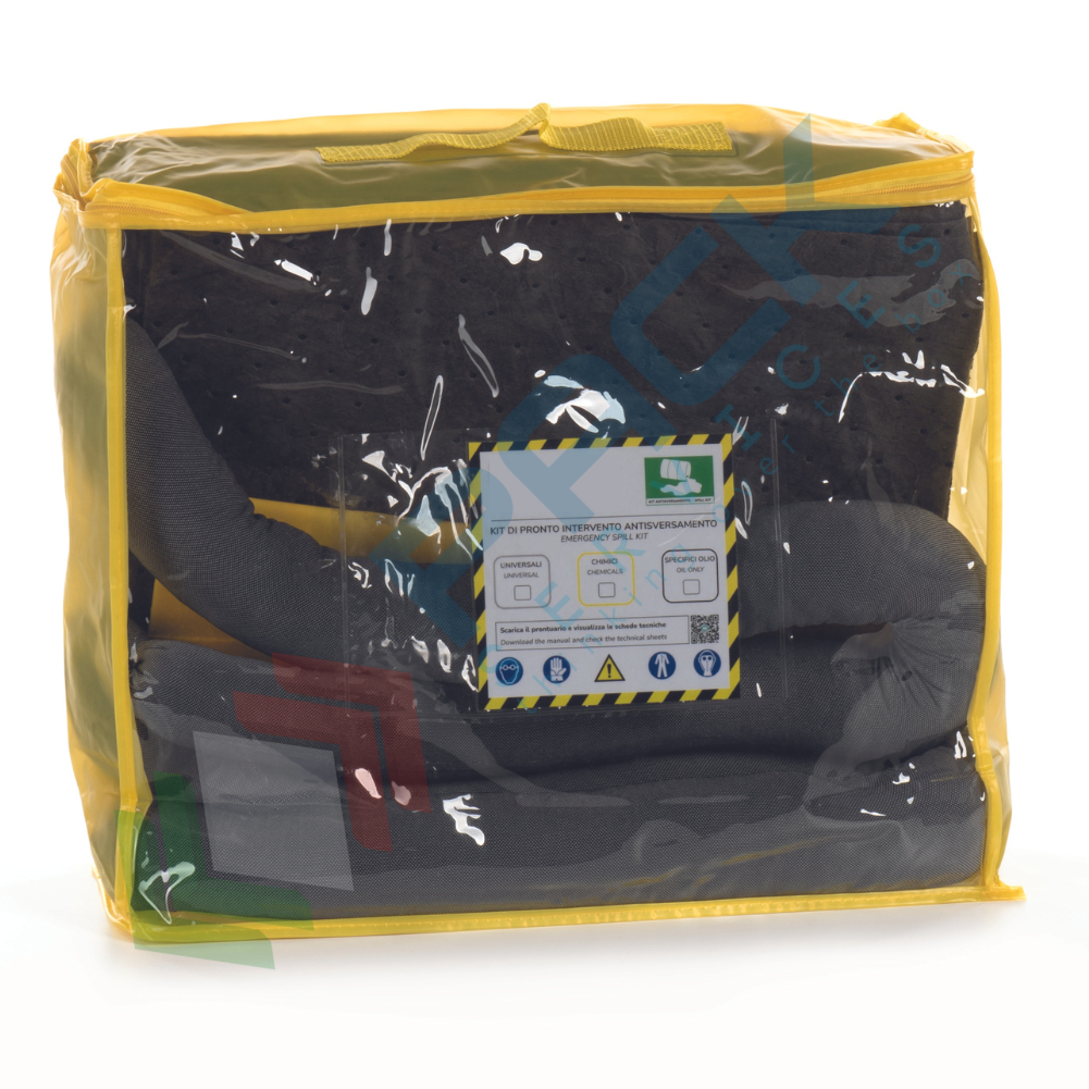 Kit di pronto intervento universale, portatile, capacità assorbimento 25 Lt, confezionato in borsetta trasparente