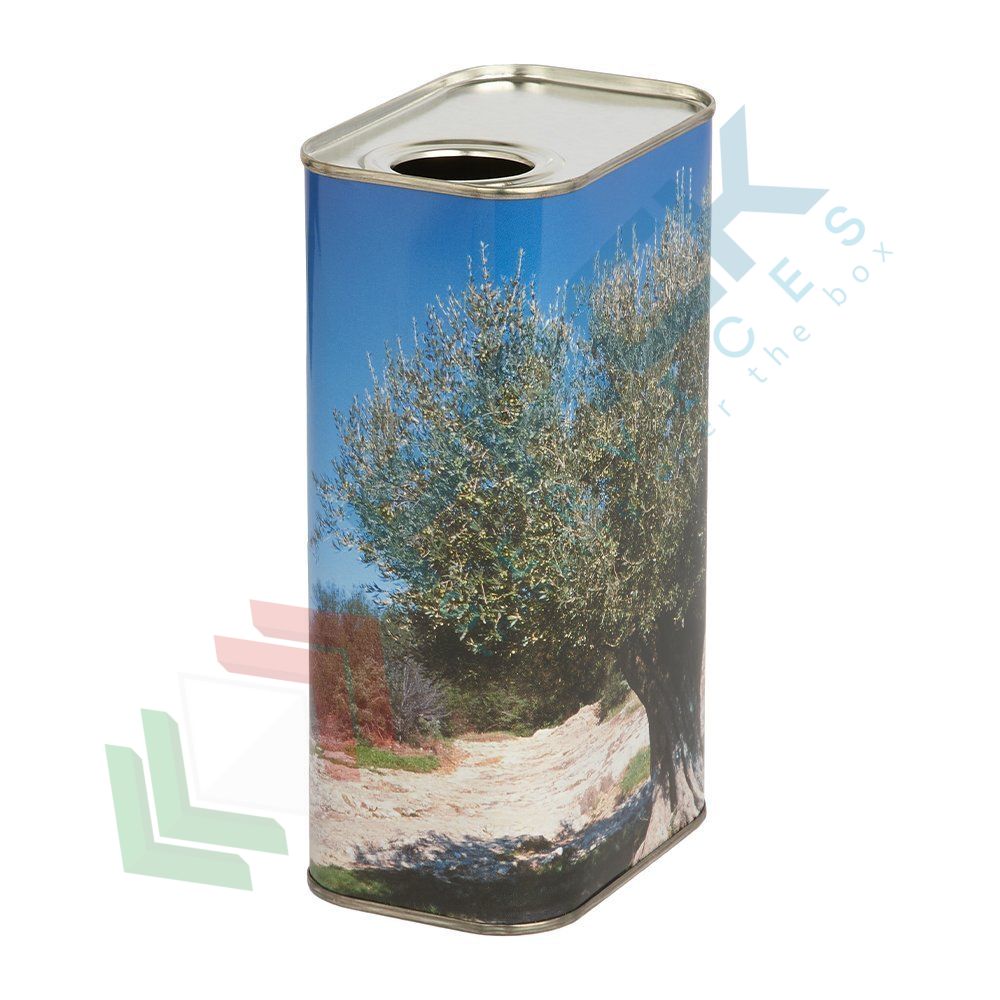 Lattina per olio in banda stagnata, capacità 1 Lt, bocca Ø 32 mm, colore anonimo con albero (tappo dosatore non incluso)