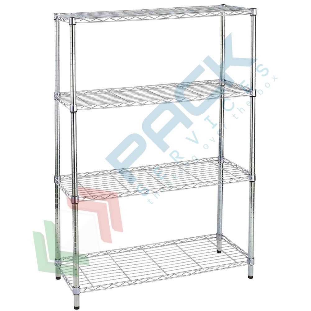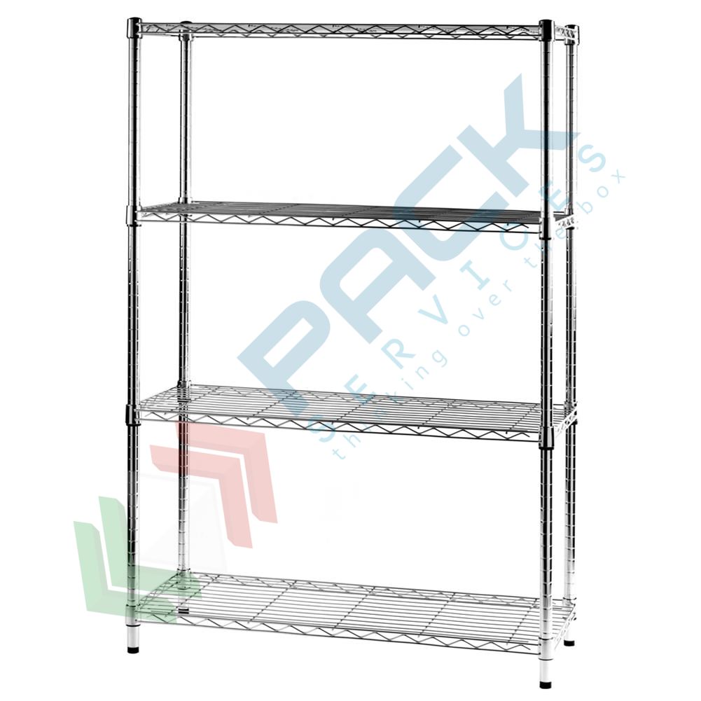 Libreria in acciaio cromato da interno, 4 ripiani leggeri, mis. 90 L x 36 P x 137 H cm
