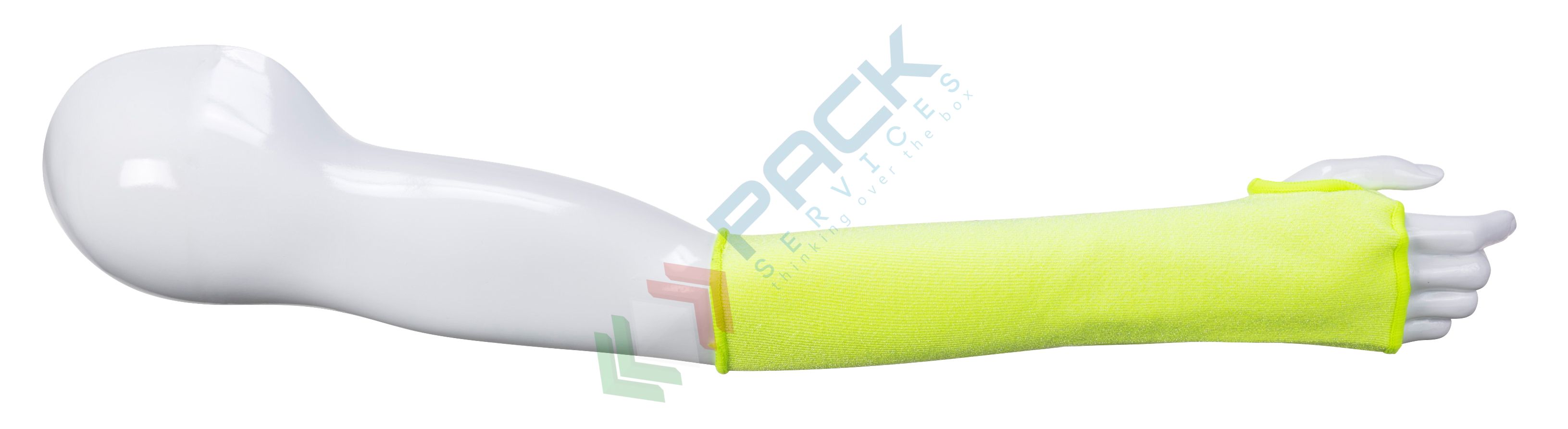 Manichetta da lavoro resistente al taglio (livello D) e al calore, ideale per la manipolazione sicura di alimenti, in HPPE + poliestere, calibro 13 per una perfetta vestibilità, omologata EN 388 + EN 407, colore giallo, lunghezza 35 cm