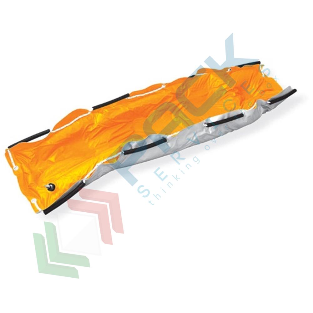 Materasso a depressione rastremato robusto e affidabile, Mis. 210 L x 880 P mm, portata 150 Kg. È munito di una corda passante che viene utilizzata nella parte inferiore, con la presenza di manopole in Santoprene®, come maniglia e nella parte superiore come attacco per le cinture di fissaggio paziente. Il lato superiore è di colore arancio, quello inferiore è grigio. La valvola on/off, realizzata in ottone cromato con portagomma incorporato, garantisce tenuta a qualunque temperatura e durata illimitata. I materiali particolarmente robusti e l'esecuzione accurata sono le prerogative per un materasso vacuum che può essere utilizzato dai gruppi della protezione civile, vigili del fuoco, industrie e soccorso montano. Per l'uso necessita della pompa Cod. Art. UB9745 e Cod. Art. UB9750 (da acquistare separatamente). REPERTORIO DISPOSITIVI MEDICI Ministero della Salute nr. 403730 classificazione CND V0804 GMDN 35689.