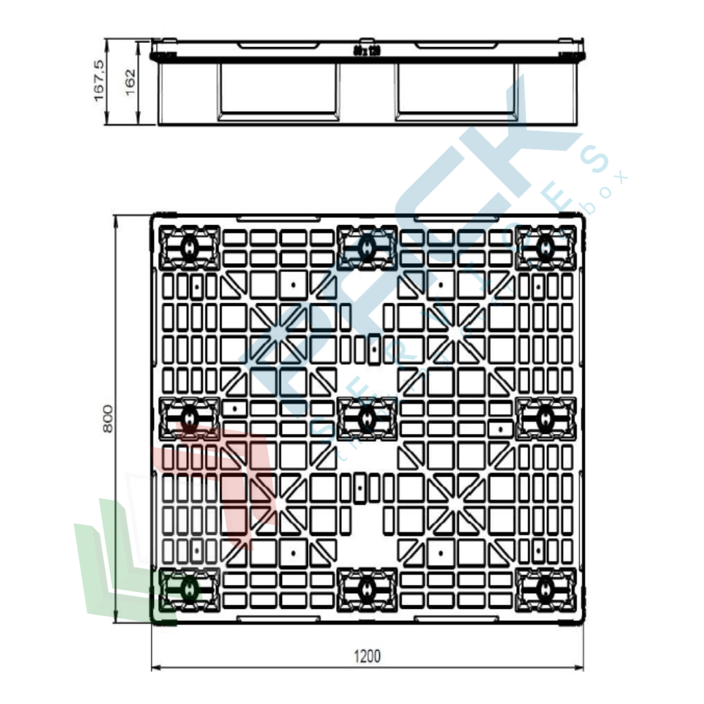 PALLET IN PLASTICA RICICLATA (PP), MIS. 800 L x 1200 P x 162 HMM