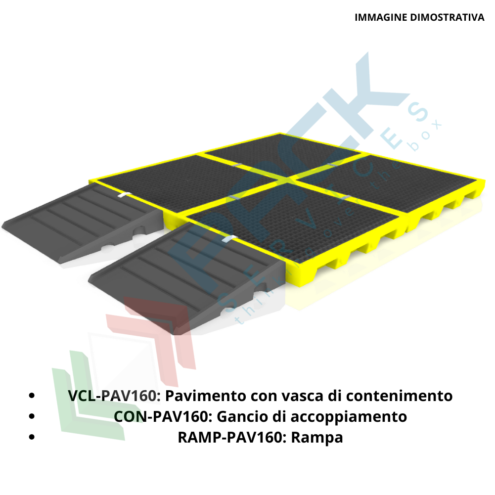 Home●Sicurezza e Ambiente●Vasche di Contenimento Liquidi in Polietilene o in Acciaio●Vasche e Pavimenti di Raccolta per Grandi Superfici●Pavimento con vasca modulare 160 Lt