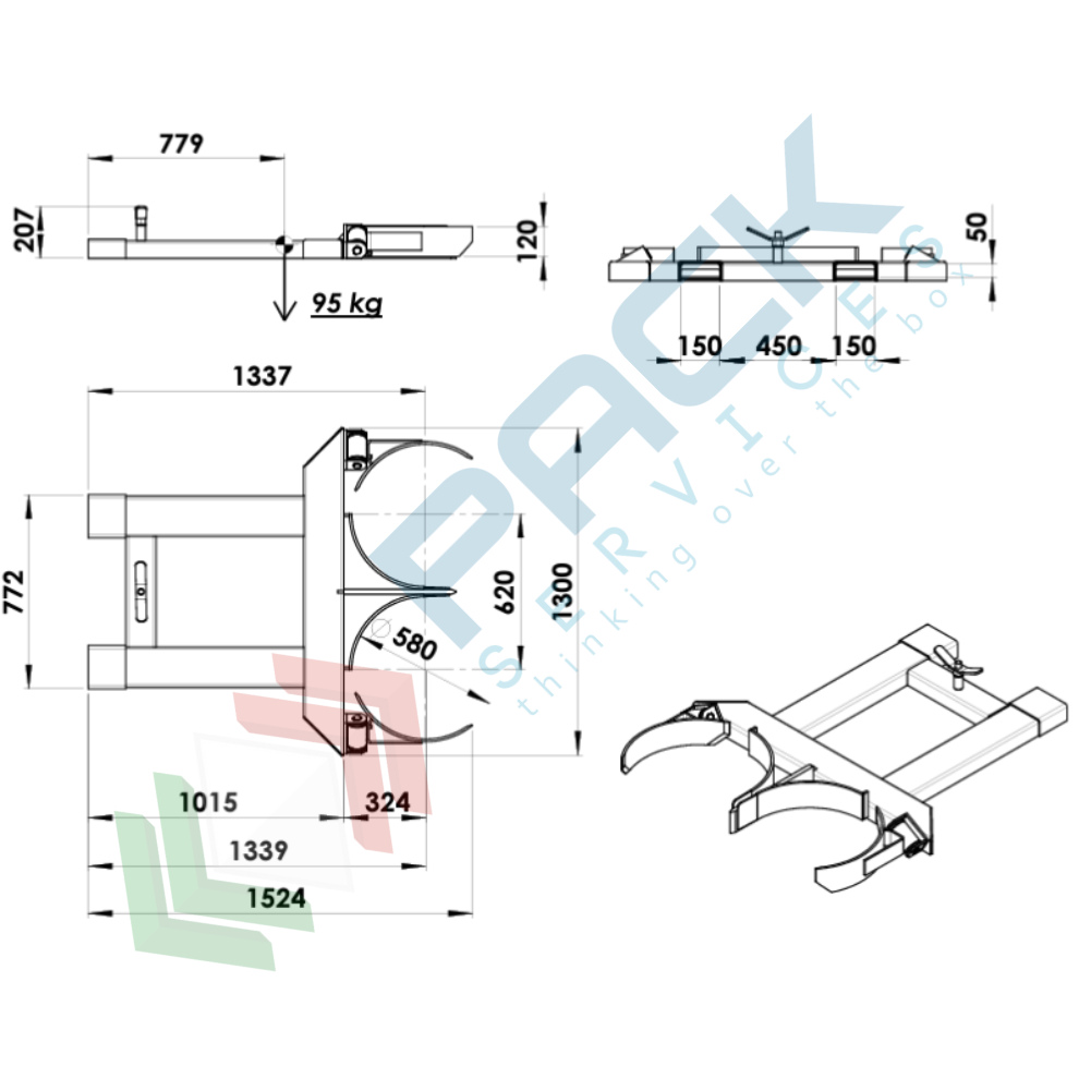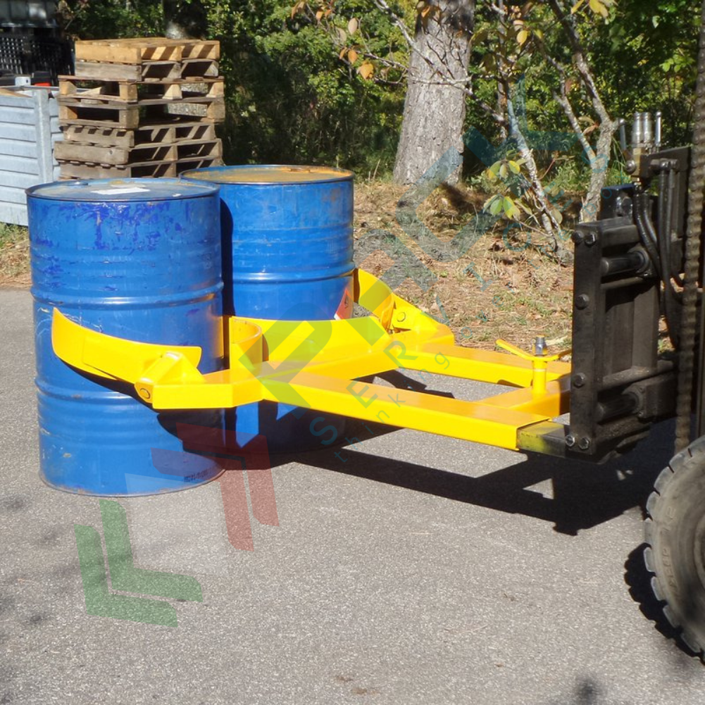 Pinza bifusto inforcabile per la presa centrale, in acciaio verniciato, Mis. 1520 L x 1300 P x 210 H mm, ideale per fusti in metallo