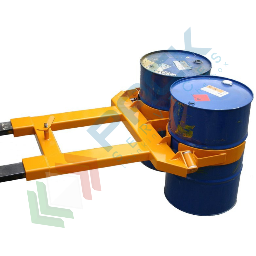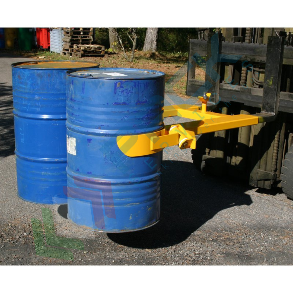 Pinza inforcabile bifusto applicabile alle forche del carrello elevatore (inforcabile) per la presa centrale di fusti in metallo. La pinza a presa centrale è ideale nel trasporto dei fusti standard metallici (fusti petroliferi), agganciandoli in modo semplice ed affidabile nella loro parte cilindrica; costruita in robusta carpenteria metallica con una forma abbastanza sottile offre un'eccellente visibilità di presa. Il fusto viene sollevato, trasportato e deposto automaticamente senza che loperatore debba scendere dal carrello elevatore. La pinza viene bloccata sulle forche del carrello elevatore in maniera semplice e sicura tramite staffa di serraggio.