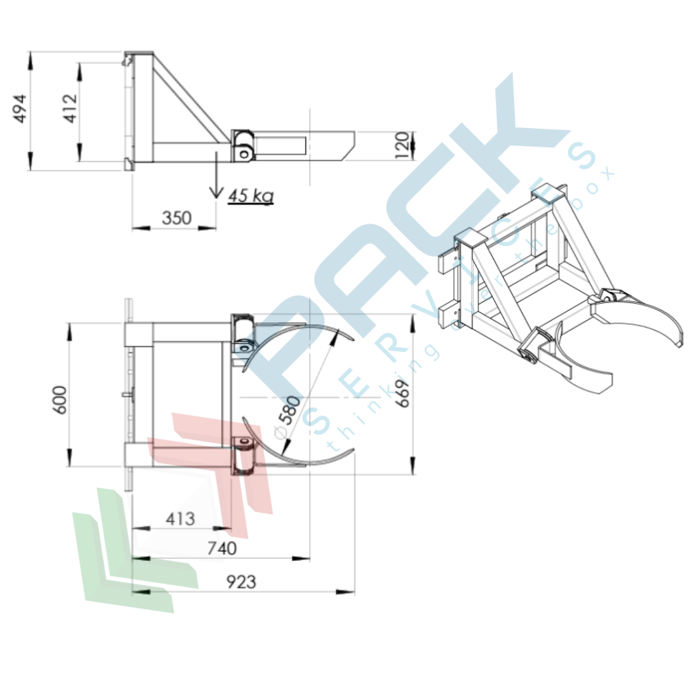 Pinza monofusto applicabile alla piastra Fem del carrello elevatore per la presa centrale di fusti metallici. La pinza monofusto è la soluzione ideale nel trasporto dei fusti standard metallici (fusti petroliferi), agganciandoli in modo semplice ed affidabile nella loro parte cilindrica; costruita in robusta carpenteria metallica con una forma abbastanza sottile offre un'eccellente visibilità di presa. Il fusto viene sollevato, trasportato e deposto automaticamente senza che loperatore debba scendere dal carrello elevatore. Staffa di bloccaggio per un applicazione veloce e sicura sulla piastra del carrello elevatore.
