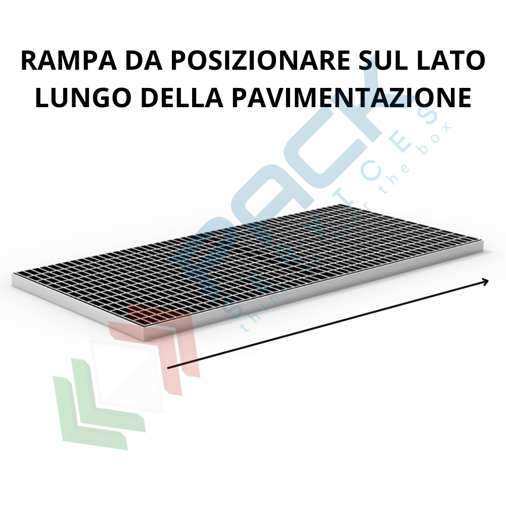 Home●Sicurezza e Ambiente●Vasche di Contenimento Liquidi in Polietilene o in Acciaio●Accessori Vasche di Raccolta Liquidi●Rampa per lato lungo 2900 L mm (Art. VCLA-PAV230)