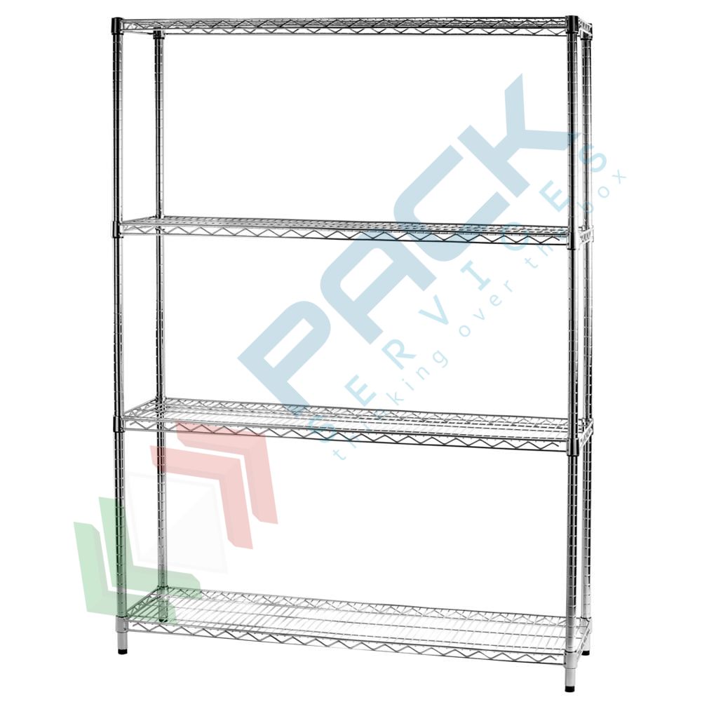 Scaffale in acciaio cromato, Mis. 121 L x 35 P x 168 H cm, 4 ripiani robusti e regolabili