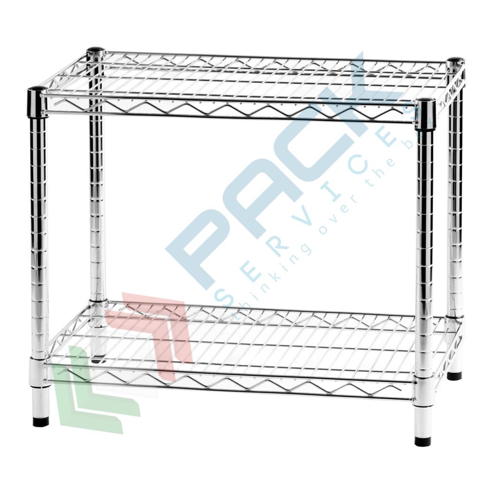 Scaffale in acciaio cromato, Mis. 60 L x 35 P x 50 H cm, 2 ripiani robusti e regolabili