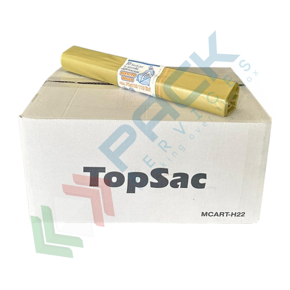 Scatola 30 rotoli da 10 sacchetti per spazzatura, Mis. 70 x 110 cm, spess. 30 my, 110 Lt, 42 gr. ideali per bidoni raccolta differenziata, colore giallo