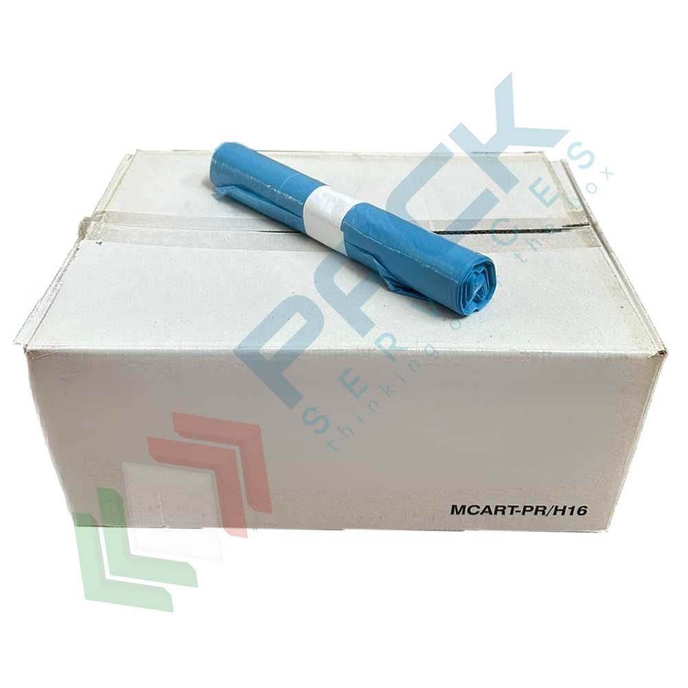 Scatola da 40 rotoli da 25 sacchetti per spazzatura, Mis. 50 x 60 cm, spess. 16 my, 27 Lt, 22,5 gr. ideali per bidoni raccolta differenziata, colore azzurro