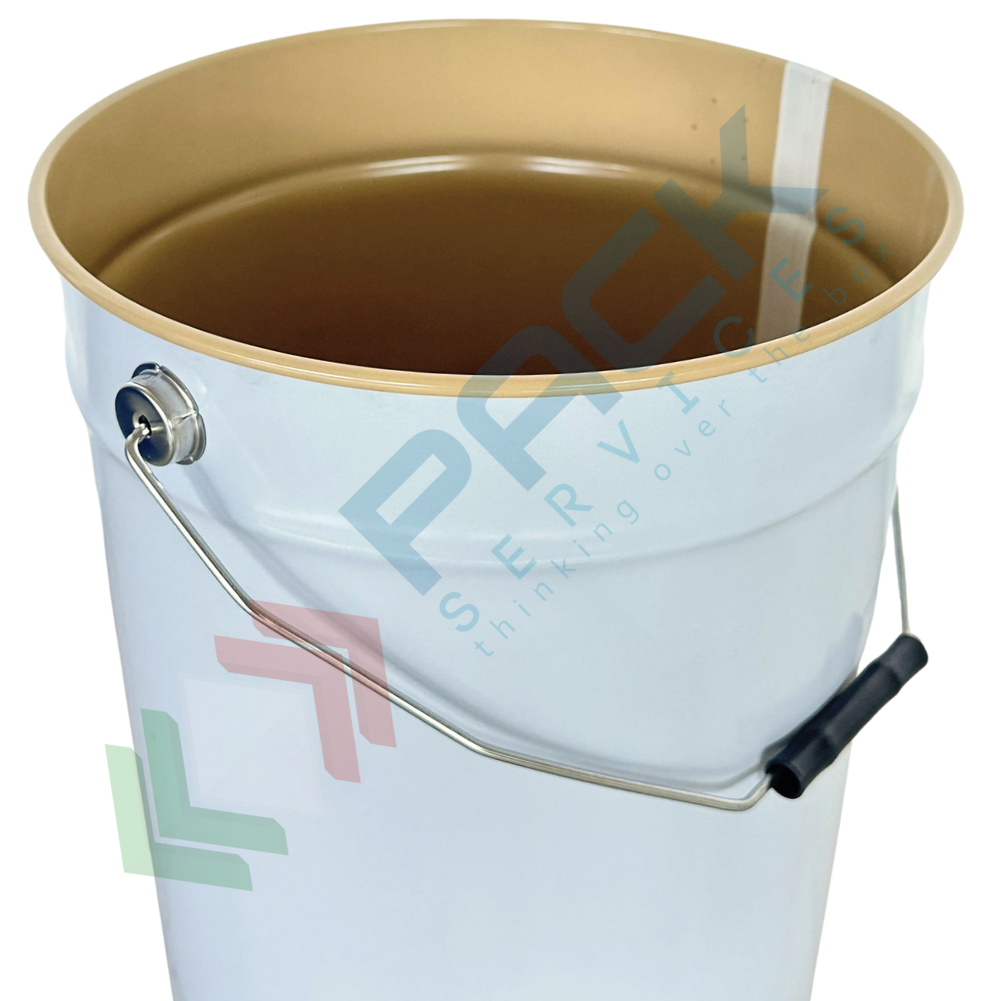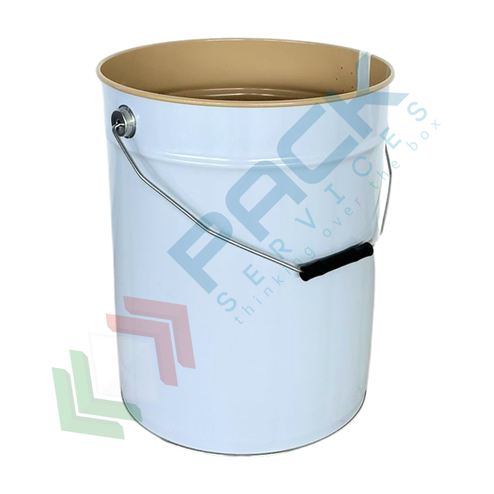 Secchio conico in metallo diametro 292 mm, altezza 234 mm, capacità nominale 12,5 Lt, capacità totale 13,8 Lt. Il secchiello in metallo conico è disponibile con coperchio con cravatta metallica a leva (accessorio da acquistare separatamente Cod. Art. LF292COP-G). Il secchio conico con manico ad arco in ferro è omologato per il trasporto di merci pericolose (ONU 1A2/Y1.6/100) ed è ad apertura totale. L'esterno è bianco, mentre l'interno è laccato, ideale per prodotti a base acqua.