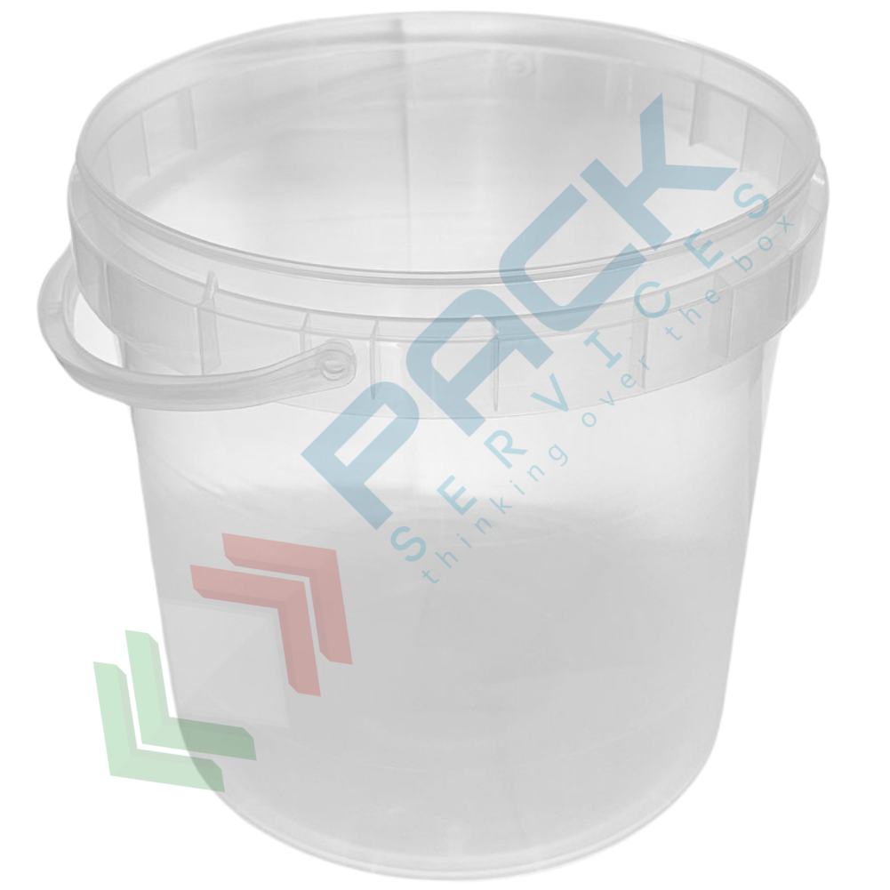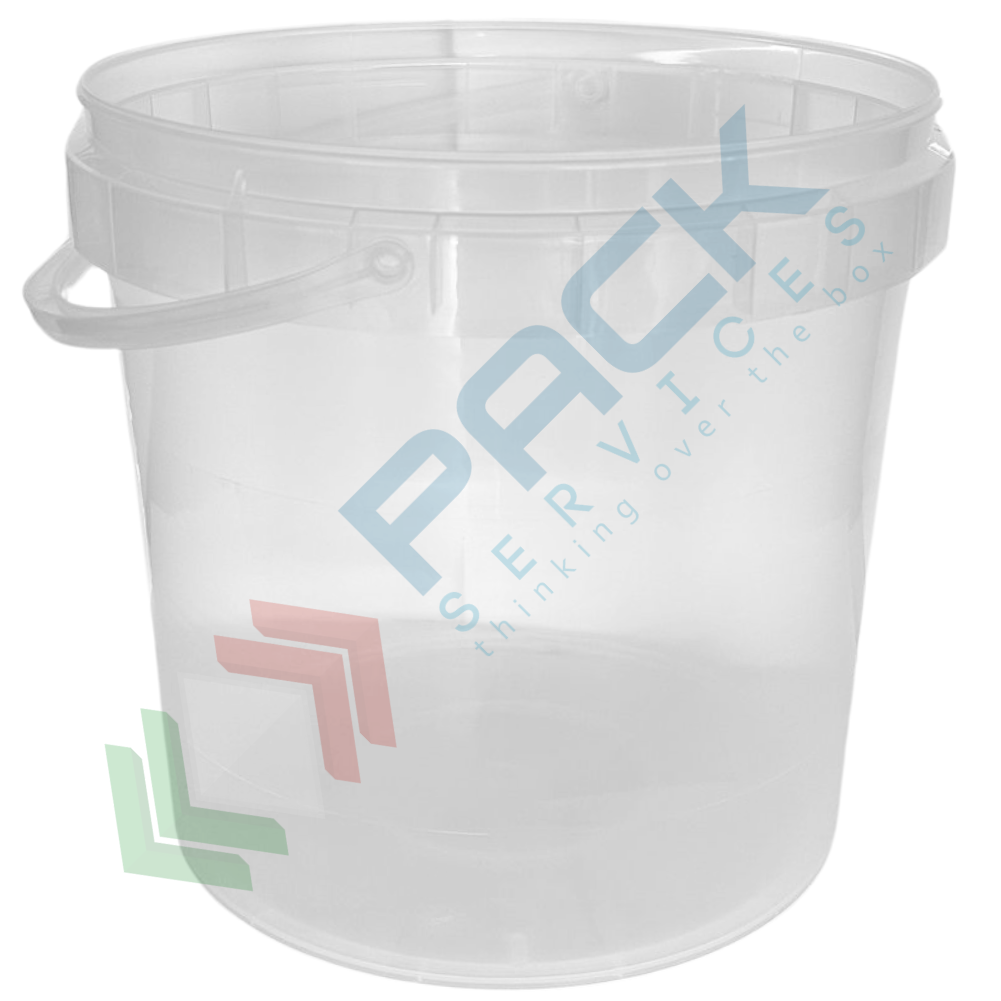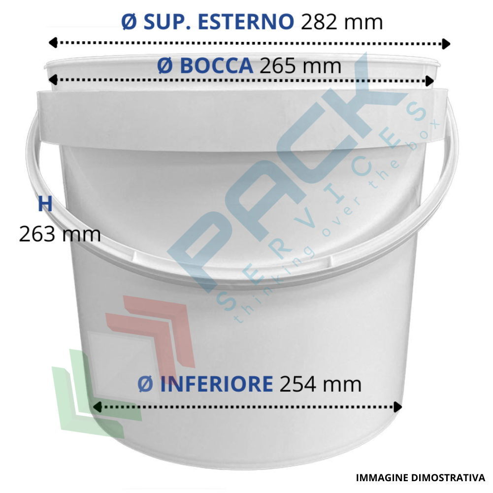 Secchio plastica (PP) conico, capacità 12 Lt, Mis. Ø 265 x 263 H mm, omologato ADR/ONU, manico in plastica, chiusura a pressione (coperchio escluso), colore neutro