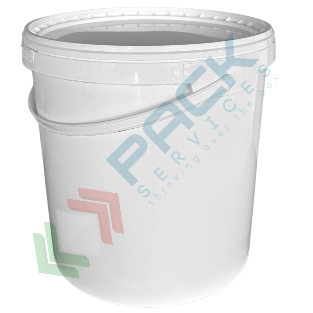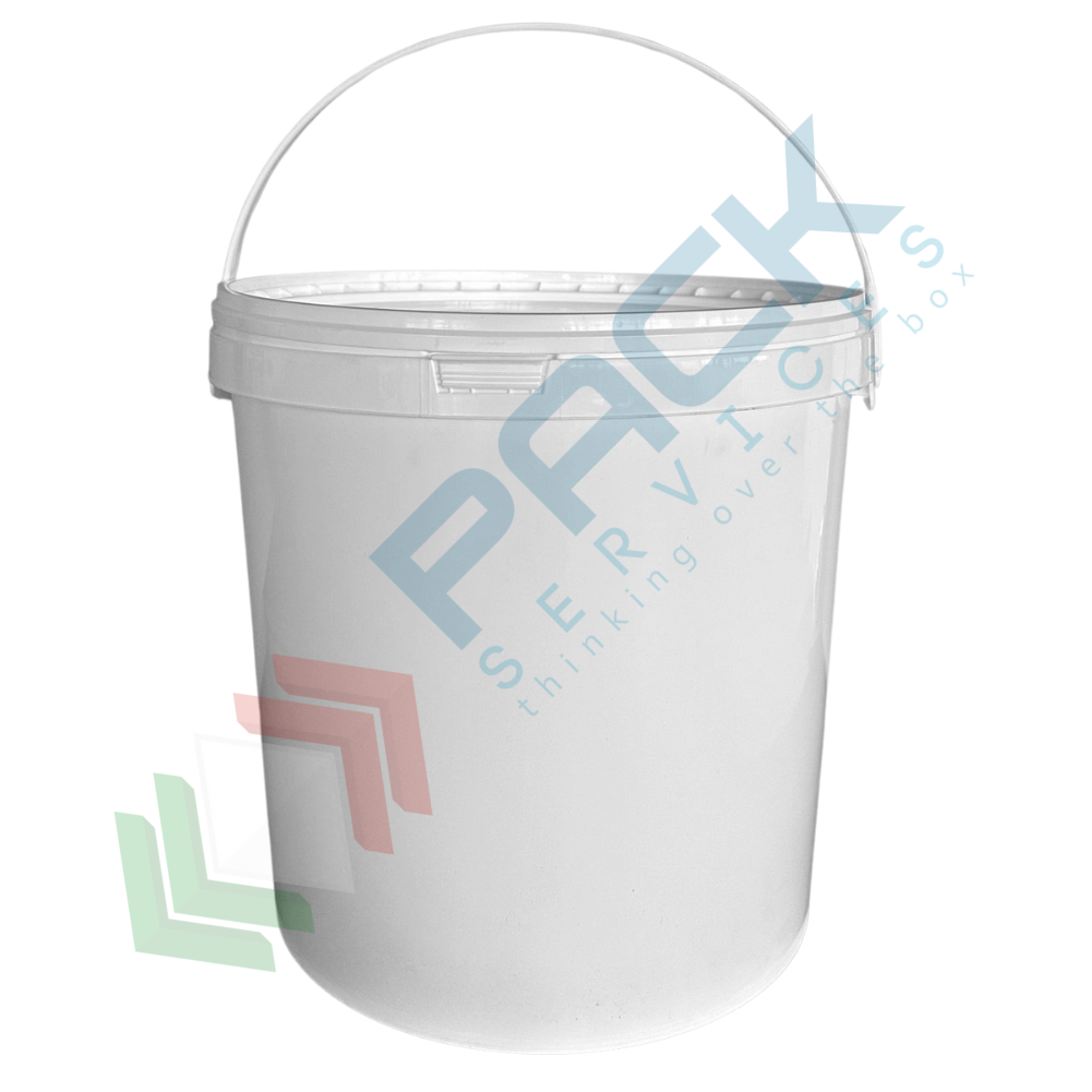 Secchio plastica (PP) conico, capacità 20 Lt, Mis. Ø 316 x 315,5 H mm, manico in plastica, sigillo di garanzia e chiusura a pressione (coperchio ESCLUSO)