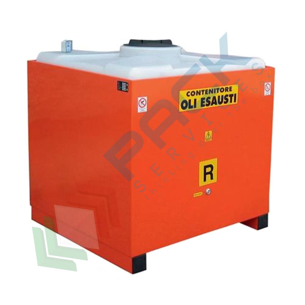 Stazione di stoccaggio per oli esausti, in acciaio, senza coperchio, capacità 300 Lt, base di appoggio 4 piedi