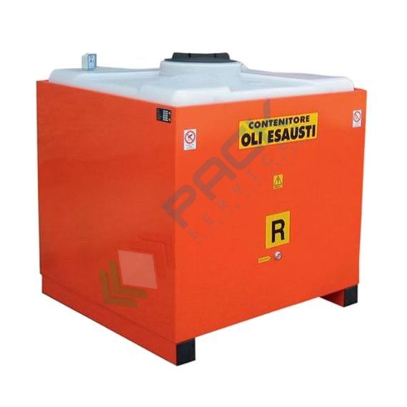 Contenitore per lo stoccaggio di oli esausti su 4 piedi senza coperchio, capacità 300 Lt, mis. 550 L x 920 P x 980 H mm. Stazione di stoccaggio praticissima e sicura nella gestione temporanea degli oli usati e dei fluidi alimentari, offre all'utente la soluzione più idonea alle proprie esigenze di raccolta, non solo in contesti industriali, ma anche in quelli relativi al settore alimentare e della ristorazione. Il contenitore di stoccaggio dispone di bacino esterno a tenuta stagna costruito in acciaio al carbonio da 3 mm e contenitore interno a tenuta stagna con boccaporto di carico a chiusura filettata, realizzato a stampaggio unico in polietilene stabilizzato U.V. per una maggiore protezione dagli agenti atmosferici. Colore arancio RAL 2004.