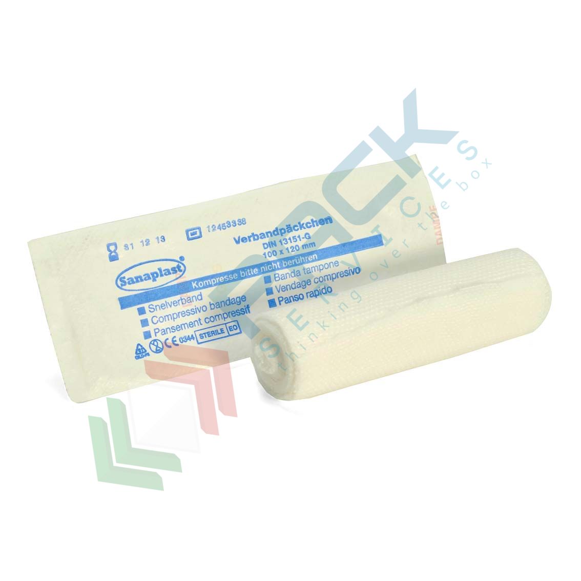 Benda elastica sterile con tampone in TNT. Medicazione e bendaggio molto veloci con un unico prodotto grazie al tampone inserito all’inizio della benda. Colore bianco, conformità CE MDR 2017/745, dimensioni 8 x 10 cm.
