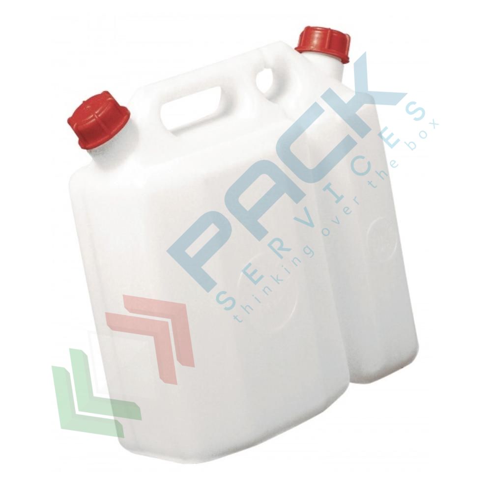 Tanica in plastica (HDPE) doppia, capacità 1,5 e 3,5 Lt, peso 370 gr, tappo a vite (incluso), colore neutro