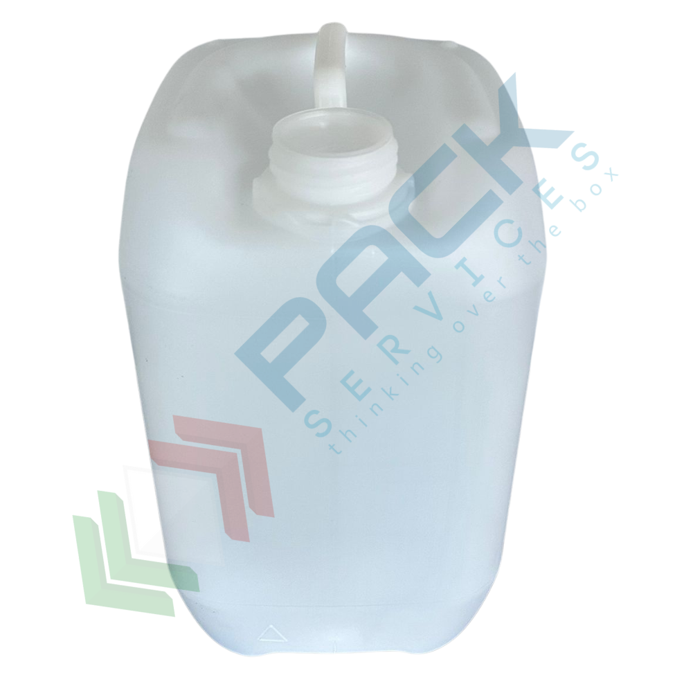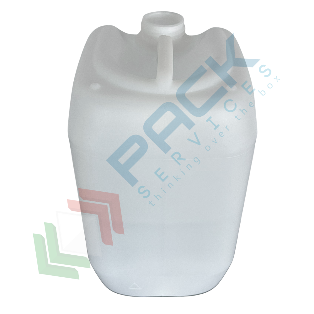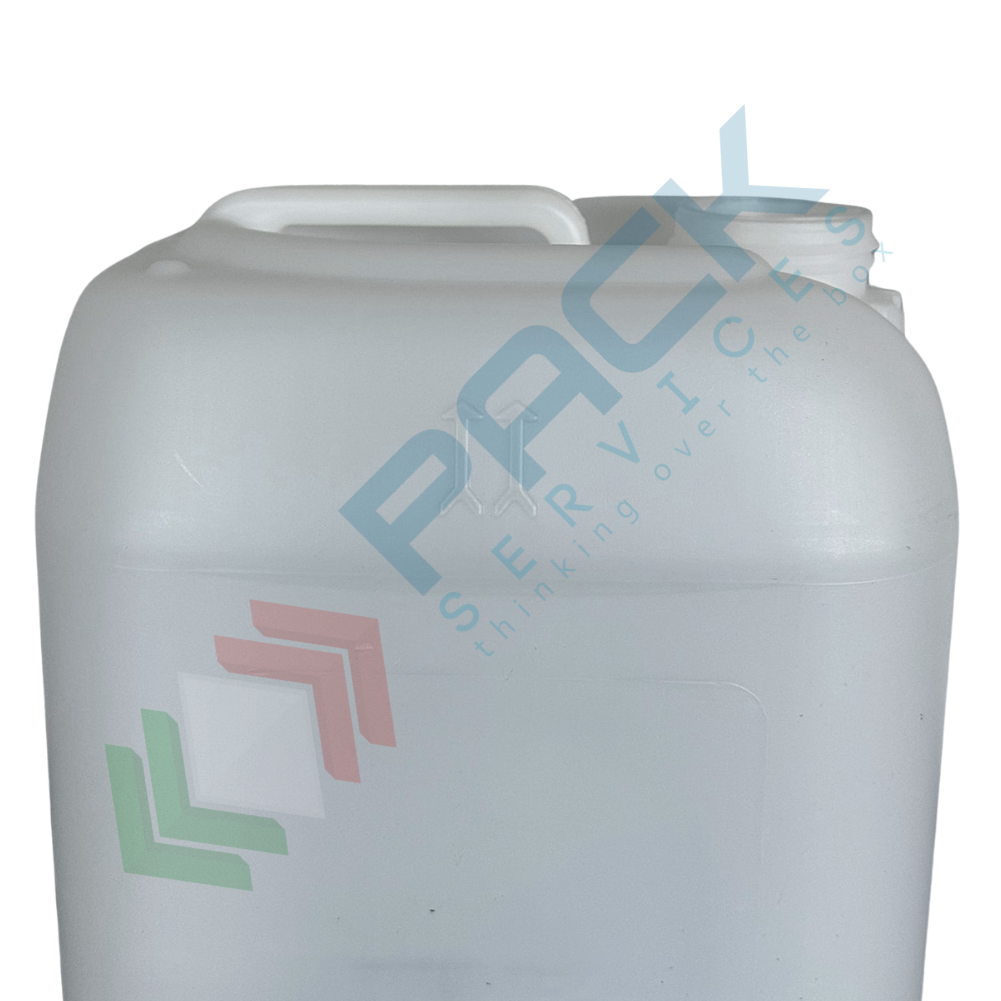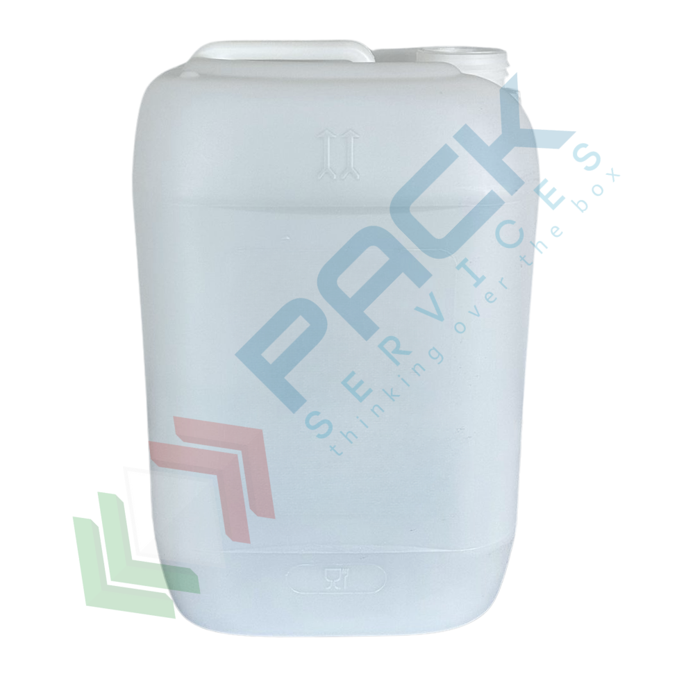Tanica in plastica (HDPE), capacità 25 Lt, per alimenti, rettangolare, sovrapponibile e omologata ADR/ONU, peso 1100 gr, colore neutro - chiusura con tappo a vite con sigillo escluso