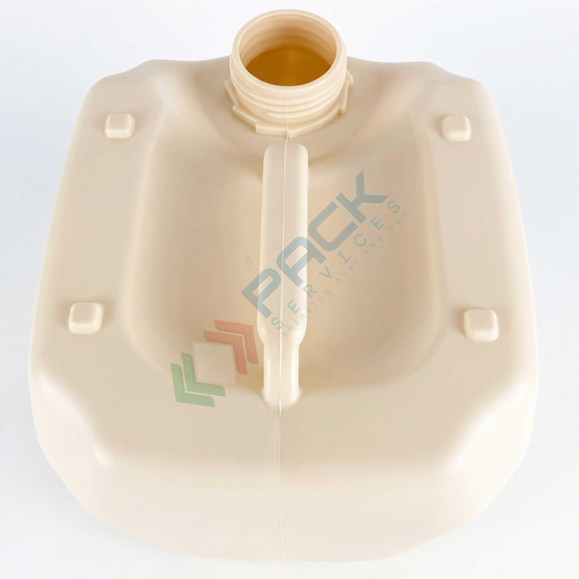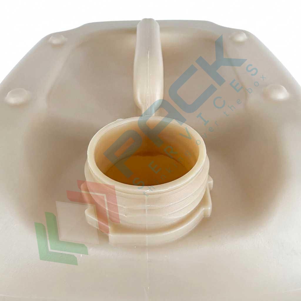 • Fondo rinforzato: Il fondo della tanica è dotato di nervature strutturali che ne aumentano la resistenza meccanica.