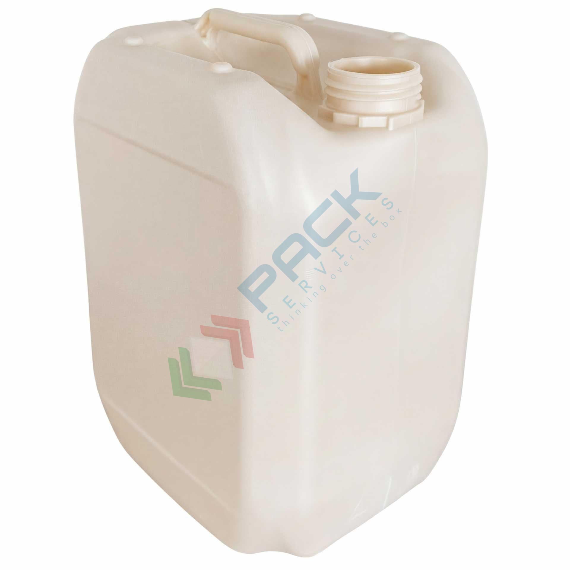 Tanica acqua sovrapponibile/accatastabile ideale per liquidi e prodotti chimici, per acqua, per benzina, per vino, per olio e per prodotti chimici non aggressivi. Tanica in plastica di sezione rettangolare con manico a filo delle spalle di appoggio superiori, con tappo di chiusura a vite DIN 51 con sigillo di garanzia (da acquistare separatamente). Colore neutro.