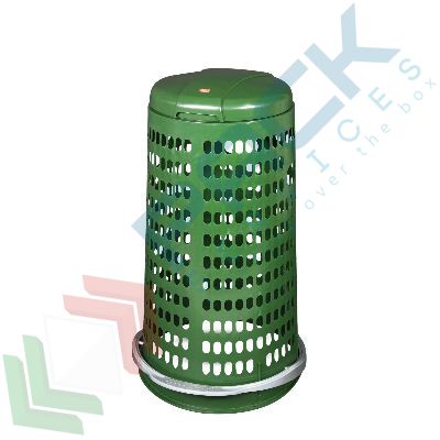 Trespolo immondizia ideale per la raccolta differenziata rifiuti, coperchio con cerniera, anello portasacco e pedale, capacità 110 Litri, Mis. Ø 380 x 800 H mm, Mis. base Ø 500 mm, altezza coperchio da aperto 380 mm. Trespolo leggero e facilmente sollevabile, pratico e semplice da utilizzare, lavabile e sterilizzabile. Trespolo per rifiuti estremamente versatile per ogni tipo di rifiuto perchè prevede l’utilizzo del sacco raccogli immondizia, che viene fissato tramite l’anello ferma-sacco. Trespolo in plastica (polipropilene 100% copolimero neutro masterizzato). Bidone raccolta differenziata impilabile, occupa poco spazio in altezza. Il trespolo per rifiuti con coperchio sorregge un sacco di polietilene, definito "tipo condominiale", per la raccolta dei rifiuti domestici o assimilabili dalle dimensioni cm. 70 x 110. Grazie al pedale per l'apertura del coperchio è a norma HACCP. Trespolo per la raccolta differenziata dei rifiuti colore verde.