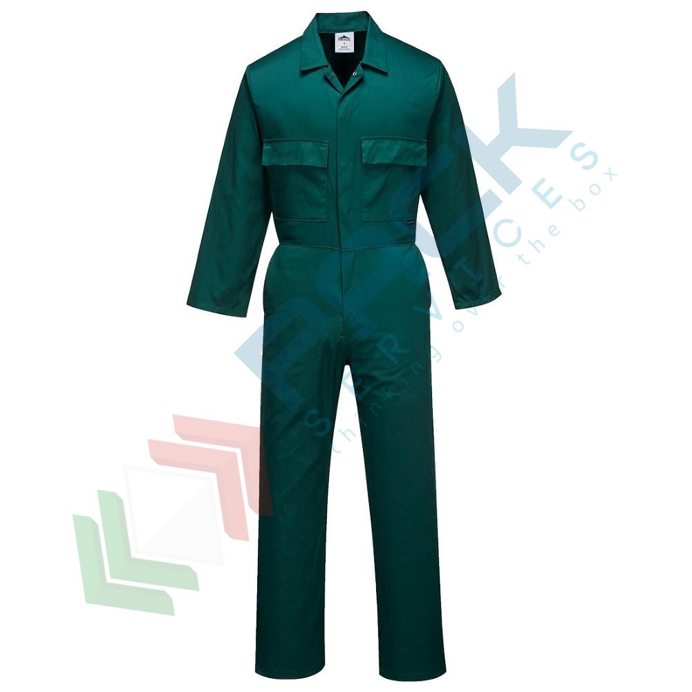 Tuta da lavoro in tessuto Kingsmill 65% poliestere + 35% cotone, 210 gr, modello Euro Work, apertura frontale con bottoni, 6 ampie tasche, vestibilità regular, colore verdone