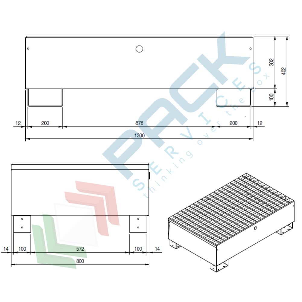 • Capacità: 200 Lt su grigliato o su europallet 1200x800 mm