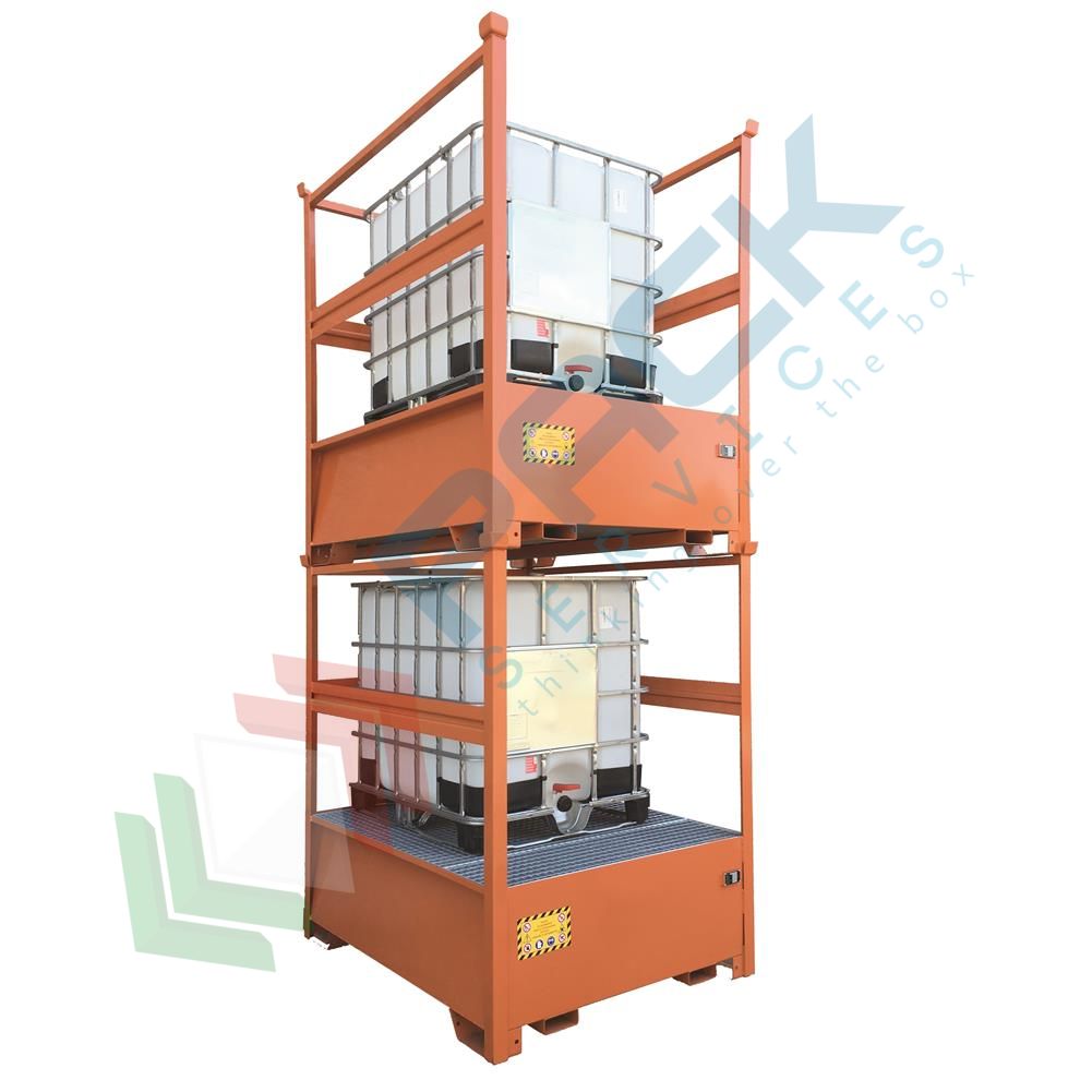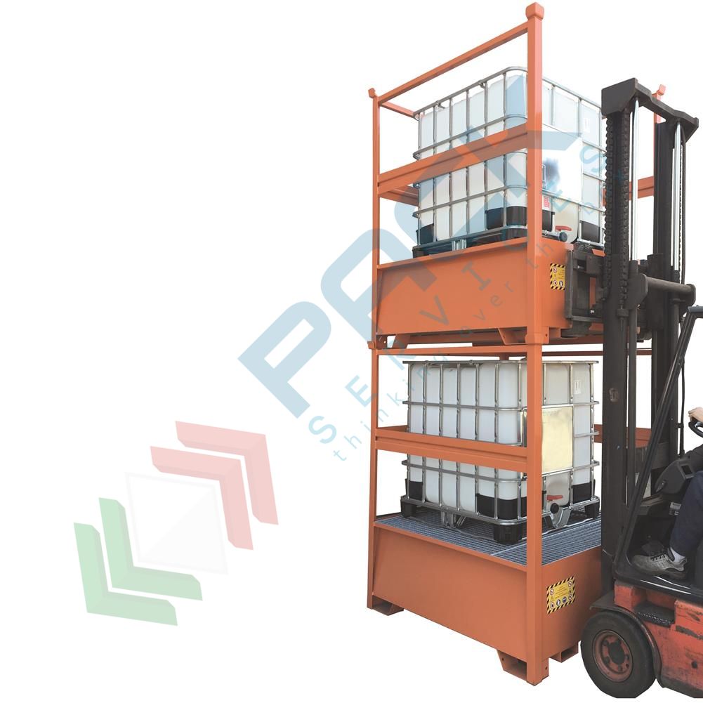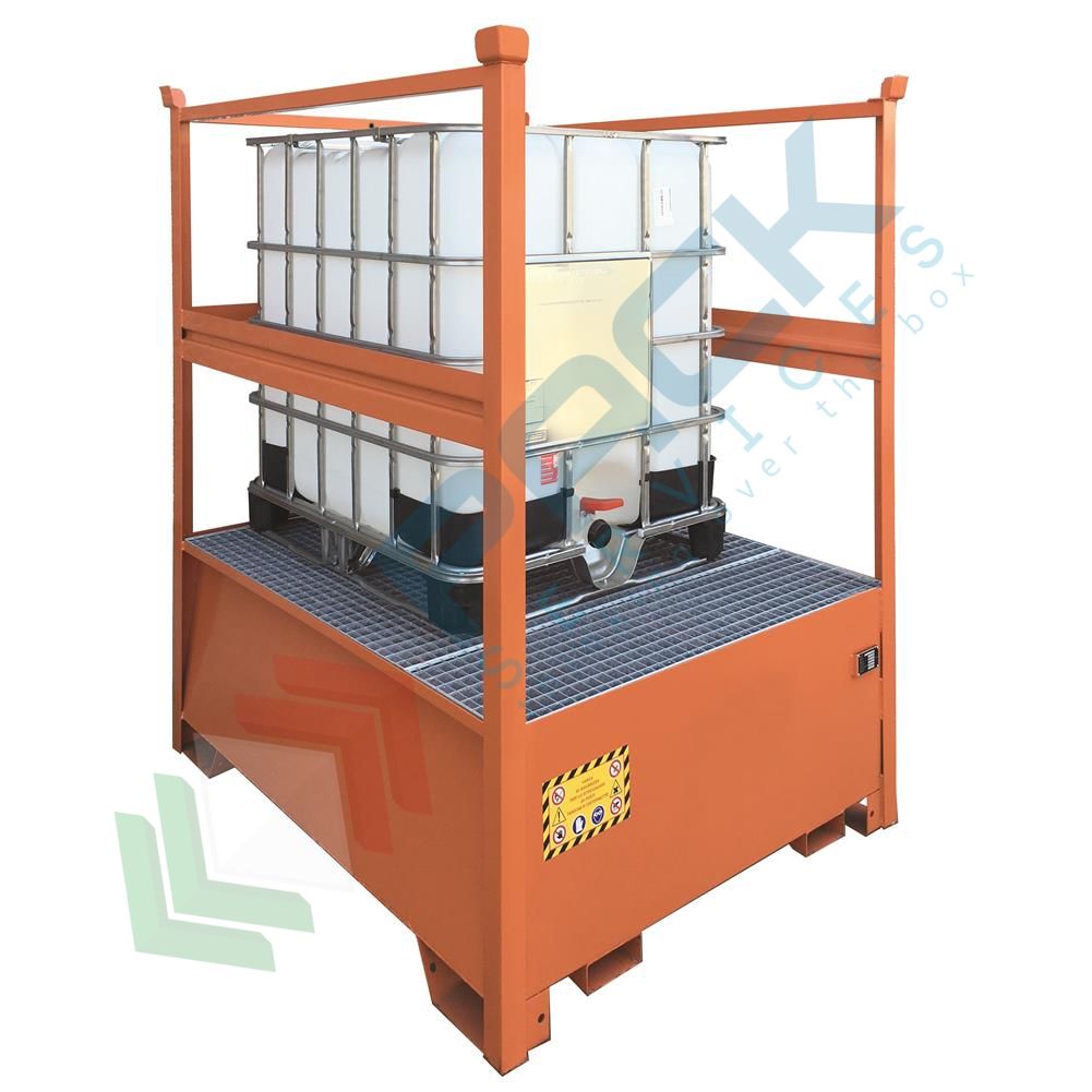 Vasca di raccolta liquidi in acciaio con pareti in lamiera a fascia, ideale per lo stoccaggio in sicurezza di 1 cisterna IBC 1000 Lt da posizionare direttamente su grigliato asportabile, robusta e resistente. Vasca di stoccaggio ideale per il contenimento di liquidi, oli, vernici, soluzioni alcaline, carburante, olio esausto, solventi, diluenti, sostanze chimiche, infiammabili impiegate nei processi industriali e nei laboratori. La vasca di stoccaggio viene utilizzata per prevenire eventuali sversamenti di sostanze pericolose ed inquinanti negli ambienti di lavoro o all'interno di falde acquifere ed eventuali danni alla salute dei lavoratori.