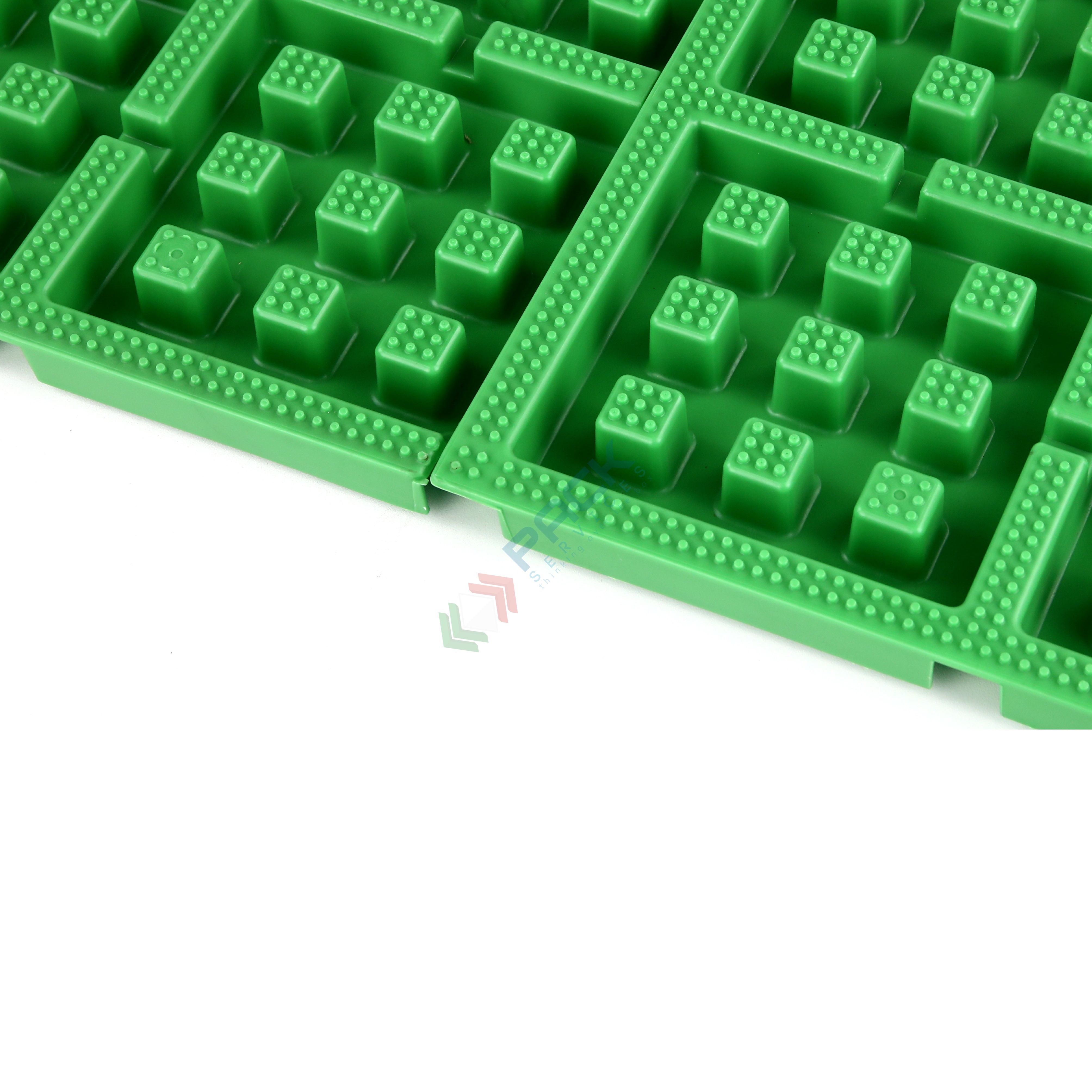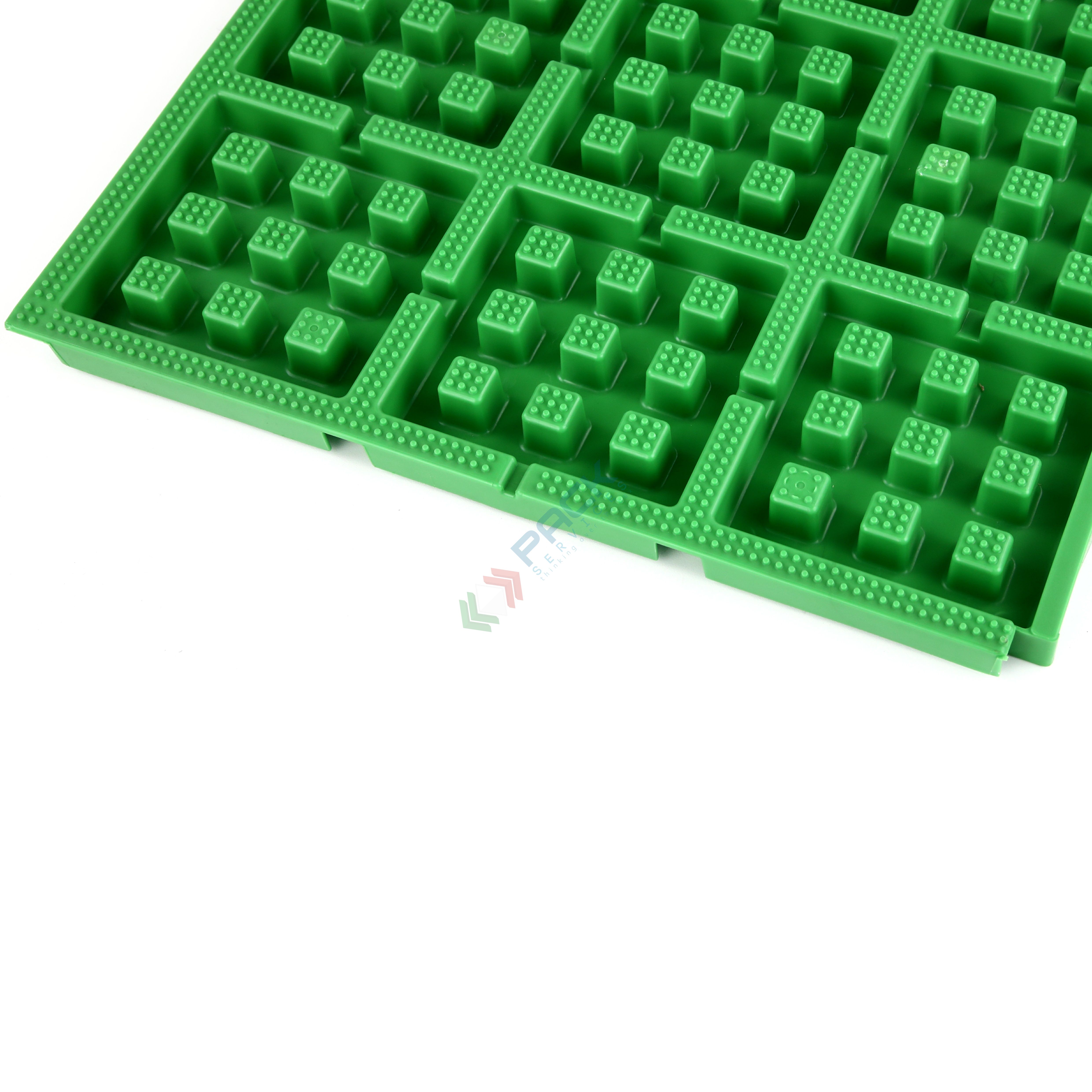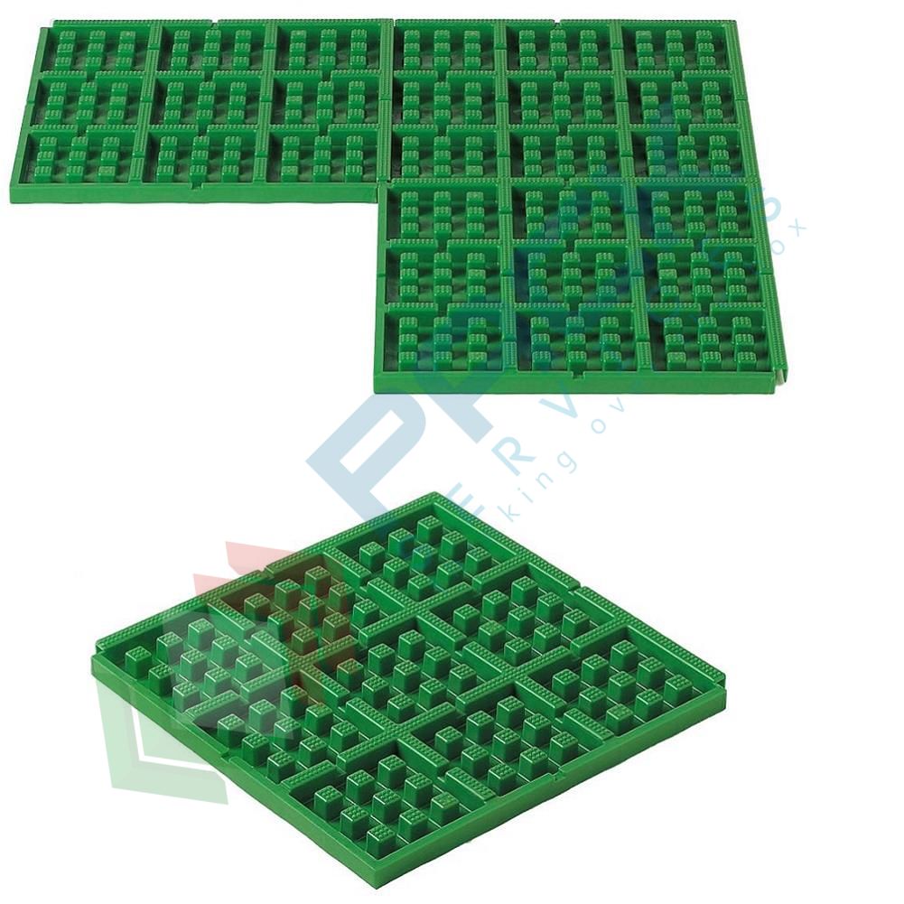 Vasca di raccolta liquidi realizzata in polipropilene (PP), capacità 2,5 Lt, Mis. esterna 508 L x 508 P x 30 H mm, 9 compartimenti. La vasca di contenimento è ideale per lo stoccaggio di piccoli contenitori o taniche e previene la fuoriuscita del liquido o lo sversamento di liquidi infiammabili, evitando così l'inquinamento delle falde acquifere. Il volume di raccolta garantisce la necessaria sicurezza contro gli sversamenti accidentali. Portata della singola piastrella 200 Kg. La vasca di raccolta in polietilene offre una resistenza ottimale contro molti acidi, soluzioni alcaline, oli e altre sostanze chimiche aggressive e corrosive. Colore verde.